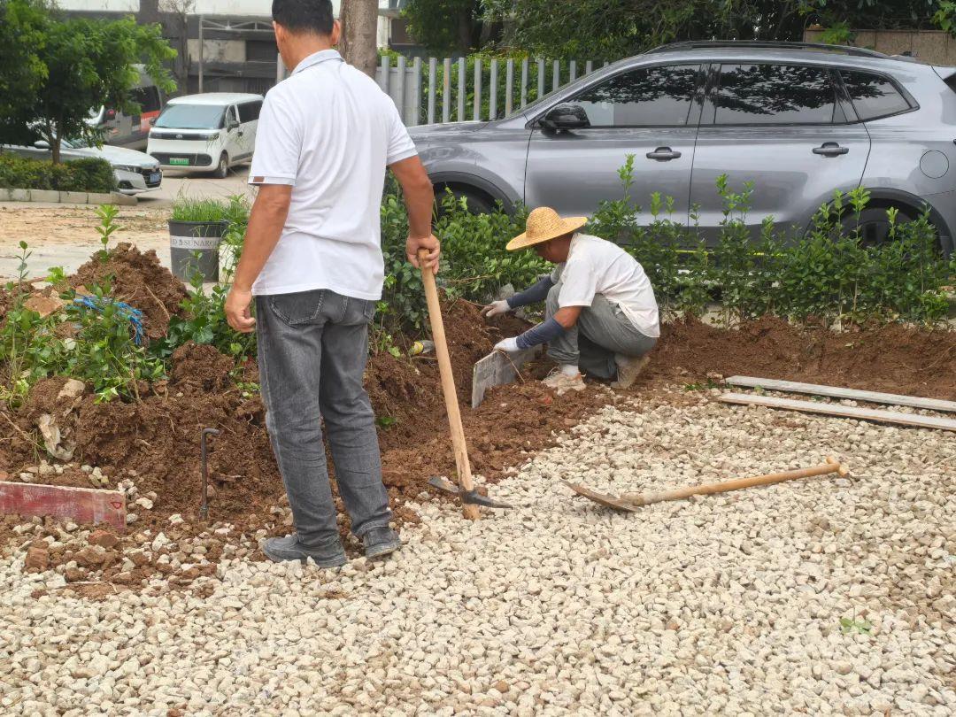 7月上旬,游乐场建设正式启动。在空地上,原本堆着一些废弃的砖石和杂物,还有几处杂草丛生的角落。工作人员和志愿者一起,用铁锹铲除杂草,将砖石和杂物搬运到指定的垃圾堆放点,进行了彻底清理。随后是地面基础处理,施工人员先用压路机将地面压实,再用专业工具平整好,为后续铺设塑胶垫打好基础。
