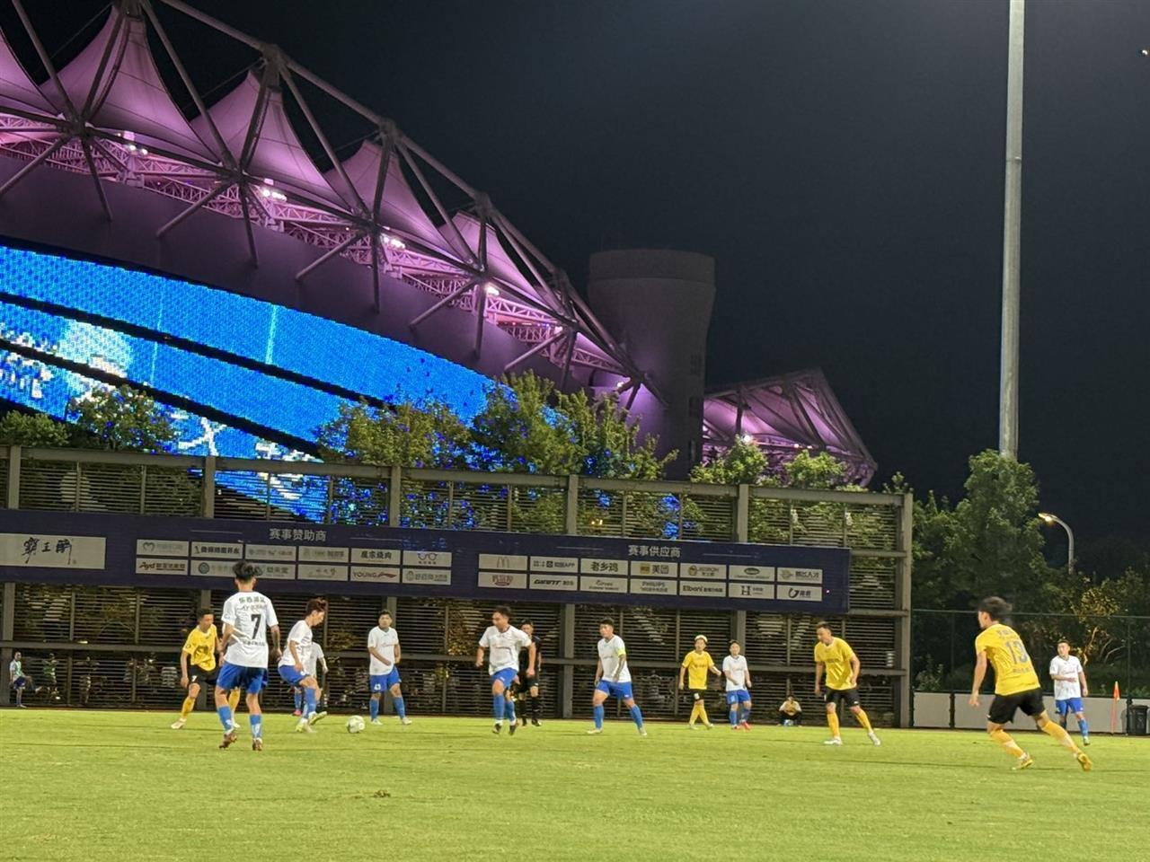 8月17日晚上7时,“汉超”开赛第二天,夏日晚间暑气持续,武汉体育中心足球场内,东西湖区与蔡甸区的比赛激战正酣。场边,震天的战鼓声此起彼伏,为赛场注入澎湃动力。