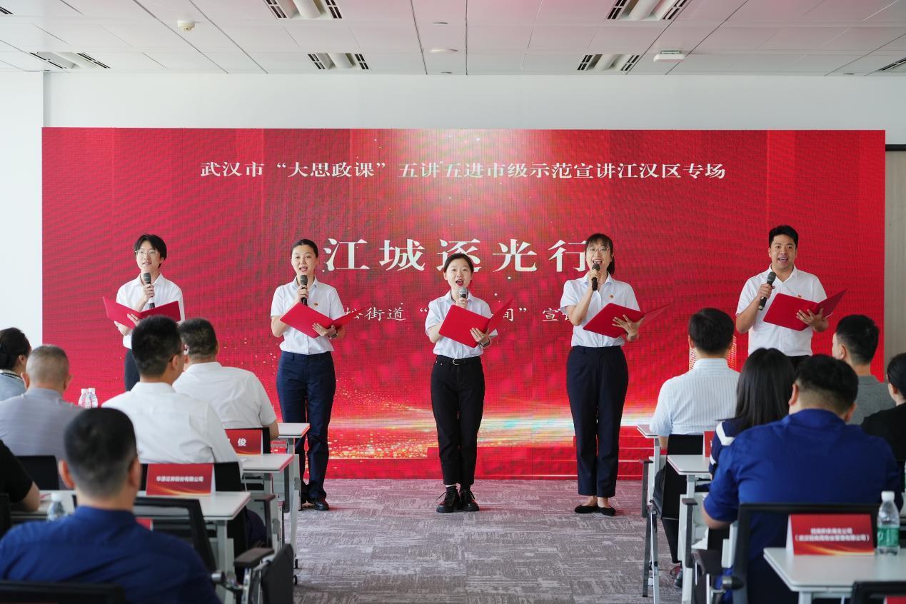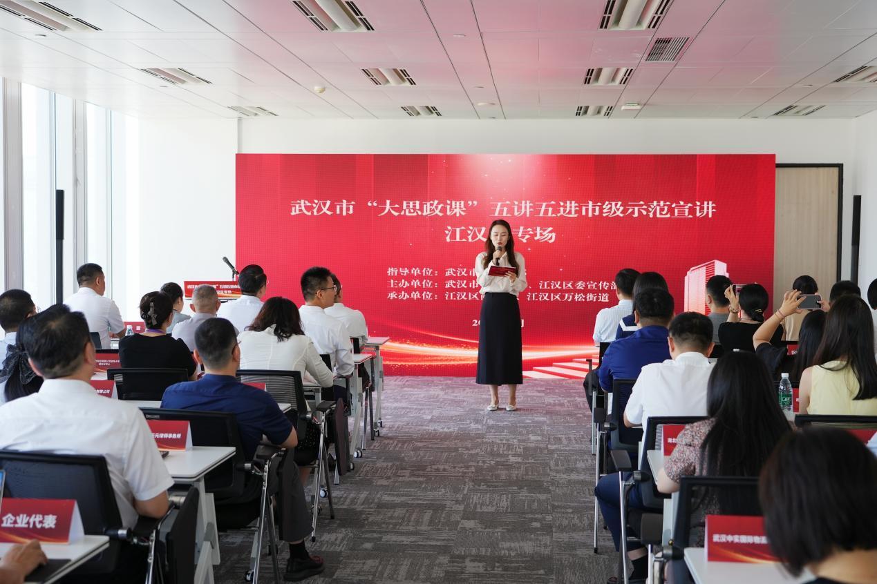 江汉区委常委、宣传部部长赵陟,市委讲师团主任李想、市委讲师团副主任陶文玲出席活动,区委宣传部、区商务局、万松街道有关负责同志,以及辖区楼宇、企业代表参加活动。现场,江汉区直部门、街道及企业的代表,分别聚焦经济发展、营商环境等方面,从不同维度展开宣讲,呈现江汉区在经济发展中的亮点与规划。