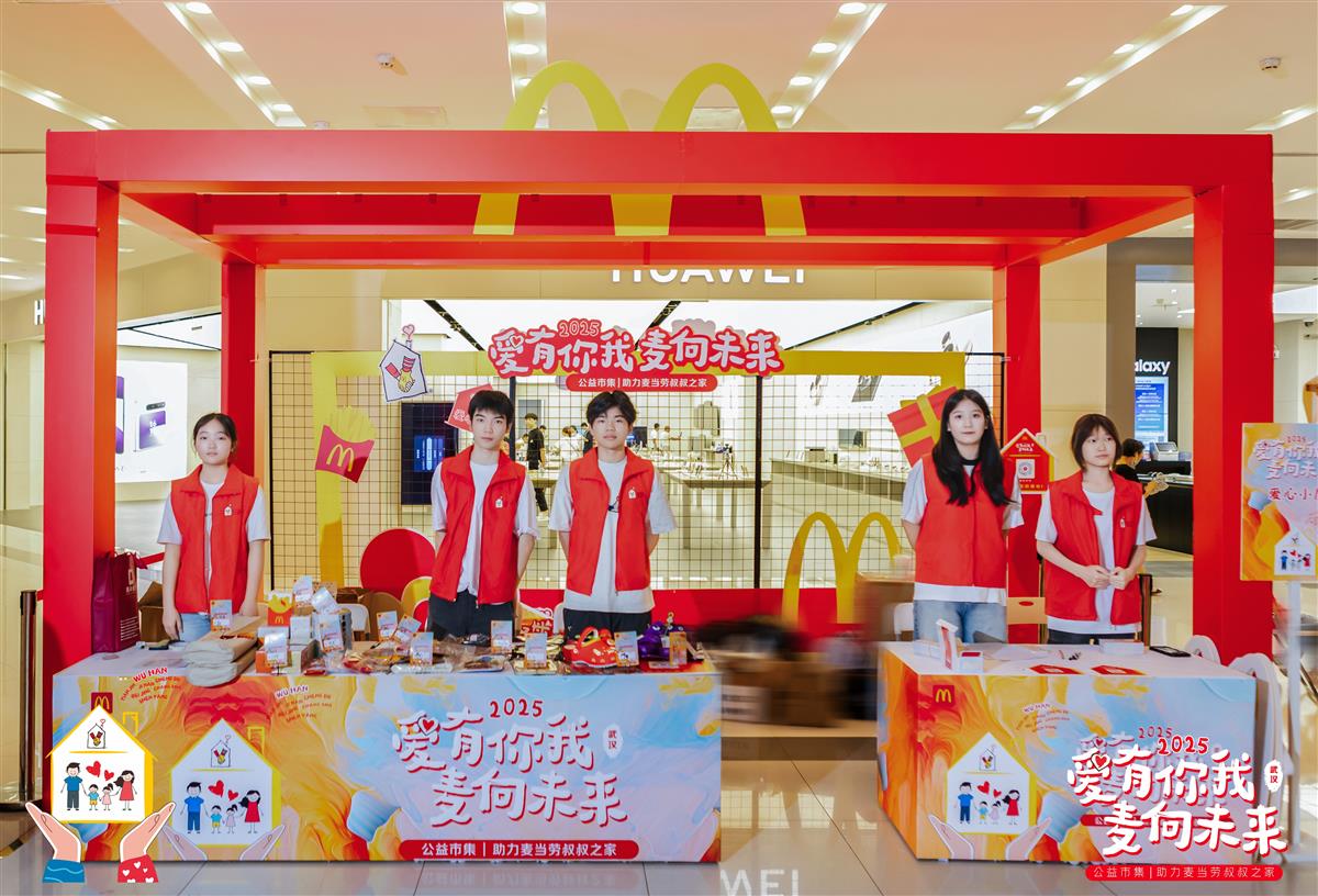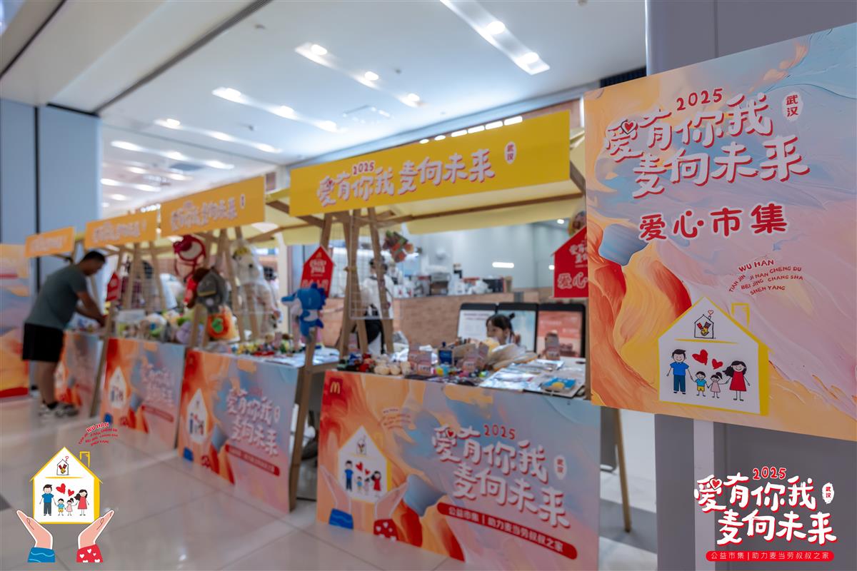 (2025年8月23日,武汉)麦当劳中国第三届“爱有你我 麦向未来”公益市集活动,于8月23日至24日在北京、武汉、天津、济南、沈阳、成都和长沙七城同期举办,共同助力麦当劳叔叔之家。本届活动吸引近万名消费者参与,更汇聚了麦当劳员工志愿者和社会各界的爱心伙伴共同参与和支持。本届公益市集所筹款项将全部捐赠给麦当劳叔叔之家公益项目,为异地就医的困难患儿家庭提供免费的住所和关爱支持,打造“家以外的家”。