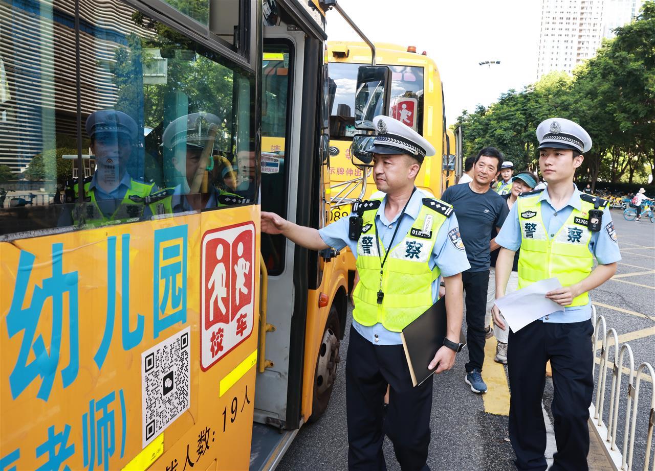 在青山区,针对白玉山中学高中部首次招生、400余名新生需通过定制公交接送的情况,8月25日,青山区分局交通管理大队主动与校方研判公交线路沿线安全,联合实地踏勘,在学校门前路段复划交通标志标线、设置提示标牌与凸面镜,并规划专用送学车位,全力解决新生上下学交通难题。