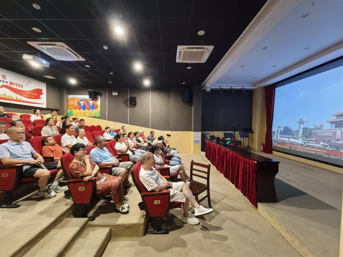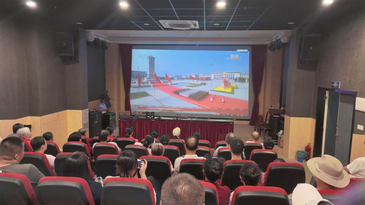 上午8时30分起,就有居民陆续到场,上午9时整,纪念大会准时开始,随着雄壮的国歌声响起,影院内的居民们自发起身,神情肃穆地注视着屏幕,不少老人眼中泛起泪光。当阅兵式环节到来,看着威武的受阅部队迈着整齐的步伐通过天安门广场,先进的武器装备依次亮相,现场不时响起阵阵掌声与赞叹声。几位经历过岁月洗礼的老人相互交流,回忆着过去的艰辛,感慨如今国家的强大。整个直播过程中,影院内秩序井然,大家全神贯注地观看,仿佛置身于大会现场,共同感受着民族的荣耀与力量。