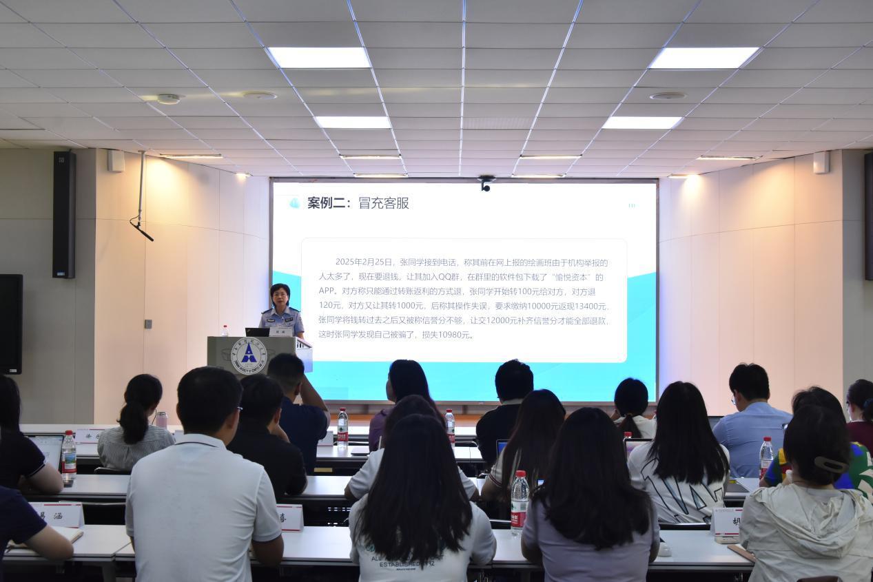 培训课上,民警紧盯高校高发、新型诈骗类型,聚焦AI换脸诈骗、兼职陷阱、“帮信罪”等重点领域,用真实案例剖析诈骗的话术逻辑与关键漏洞。“现在不少诈骗分子利用AI技术冒充熟人实施诈骗,一定要引导学生通过原有联系方式多重核实。”针对学生易被兼职“跑分”、刷单诱惑的特点,民警详细讲解了此类行为的法律后果和识别技巧,提醒辅导员加强日常警示和排查。