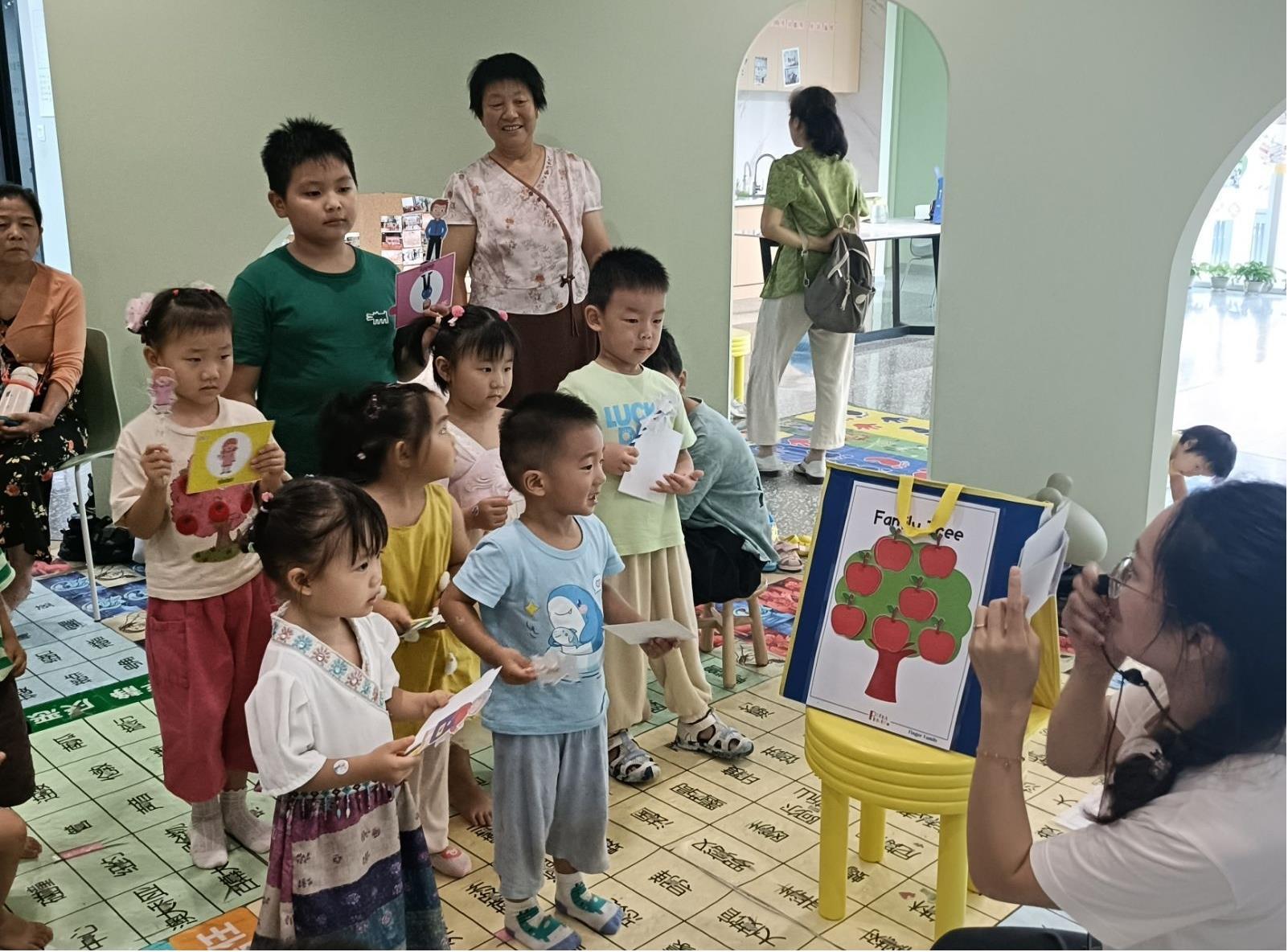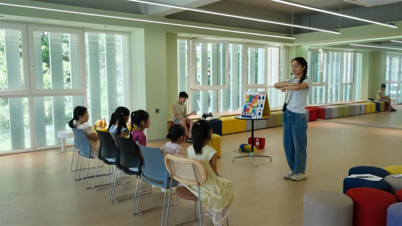 今年暑假,新光电社区的活动室里多了一道温馨的风景:90后英语老师宋盈盈参与社区“互助带娃”项目,并主动提出利用专业知识为3—6岁的孩子们开设一个月免费的英语公开课,带领小朋友们畅游英语世界。