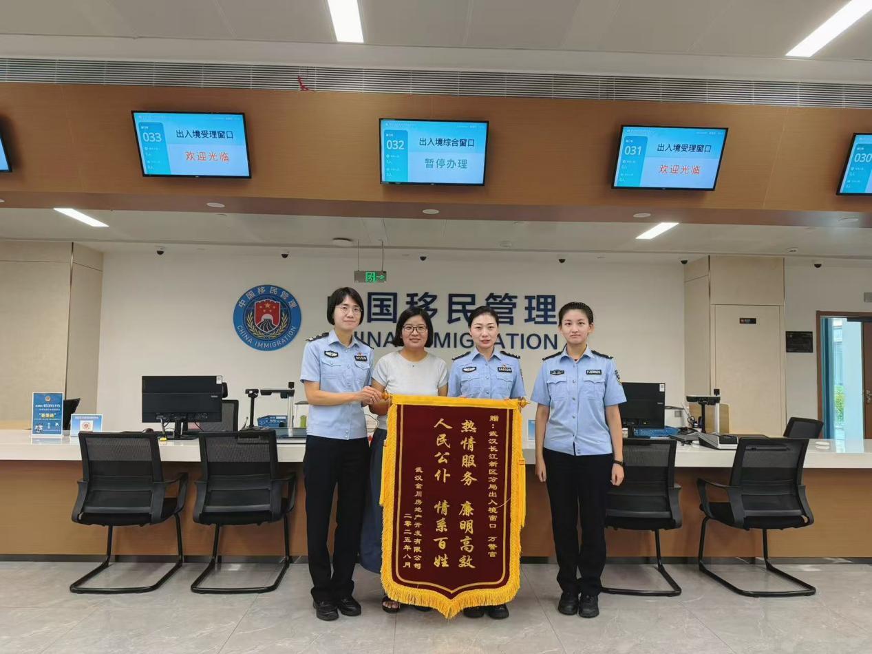 9月4日,一面绣着“热情服务 廉明高效 人民公仆 情系百姓”的锦旗,被一家企业负责人专程送到了长江新区政务服务中心出入境窗口。这面来自辖区企业的锦旗,承载着40余名员工的谢意。