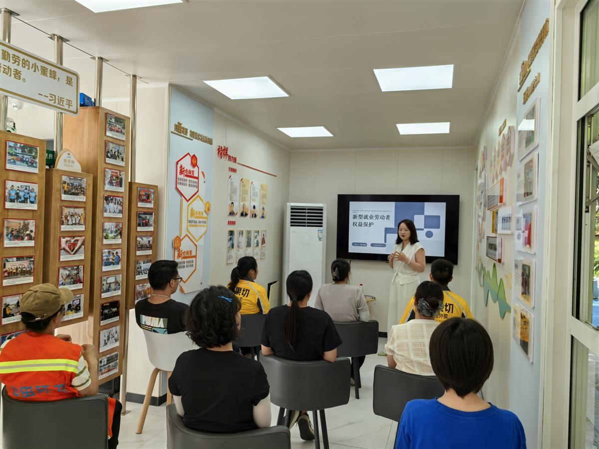 9月11日,武汉市硚口区罗家墩社区聚焦外卖骑手、网约车司机等新就业群体的权益保障需求,在汉江湾驿站举办“新就业劳动者法律护航”专题宣讲活动。通过“政策解读 + 案例剖析 + 实操指导”的形式,为新就业群体从业者送上“法律维权指南”,切实解决他们在工作中遇到的报酬、社保、安全等核心问题。