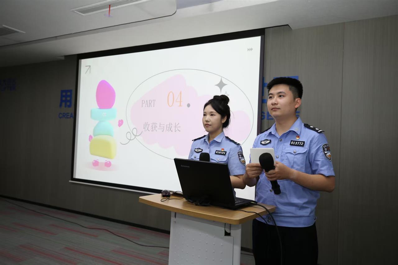 随后“网安学长学姐”李泽、李中楠为同学们带来一场“网络小卫士安全冲浪特训营”。“公共场所无密码WiFi能否连接?”“免费领取电话手表但需要填写个人信息能否答应?”听到提问后,台下的同学们纷纷双手交叉比出表示“错误”的手势,展现出良好的网络安全素养。队员们还踊跃分享自身遭遇网络骗局经历,七年级一位同学更是坦言:“我曾轻信‘转发30个群送奖品’导致QQ被盗,吓得三个月没敢打开平板电脑。”这些身边案例让在场同学深有感触。一位同学在活动后坚定地表示:“作为少年警队成员,不仅要自己记住这些反诈知识,还要回家讲给家人听,帮助全家远离网络陷阱。”
