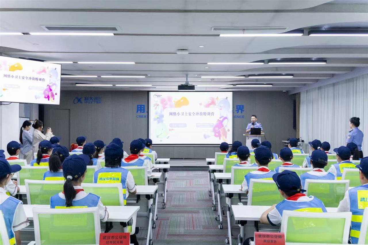 “公共场所无密码的WiFi能否连接?”“免费领取电话手表但需要填写个人信息能否答应?”一双双小手纷纷交叉比出错误手势。9月19日,正值2025年国家网络安全宣传周,40名来自武汉经开外国语学校的武汉少年警队员走进科大讯飞展厅,迎来了一堂特殊的网络安全教育课。