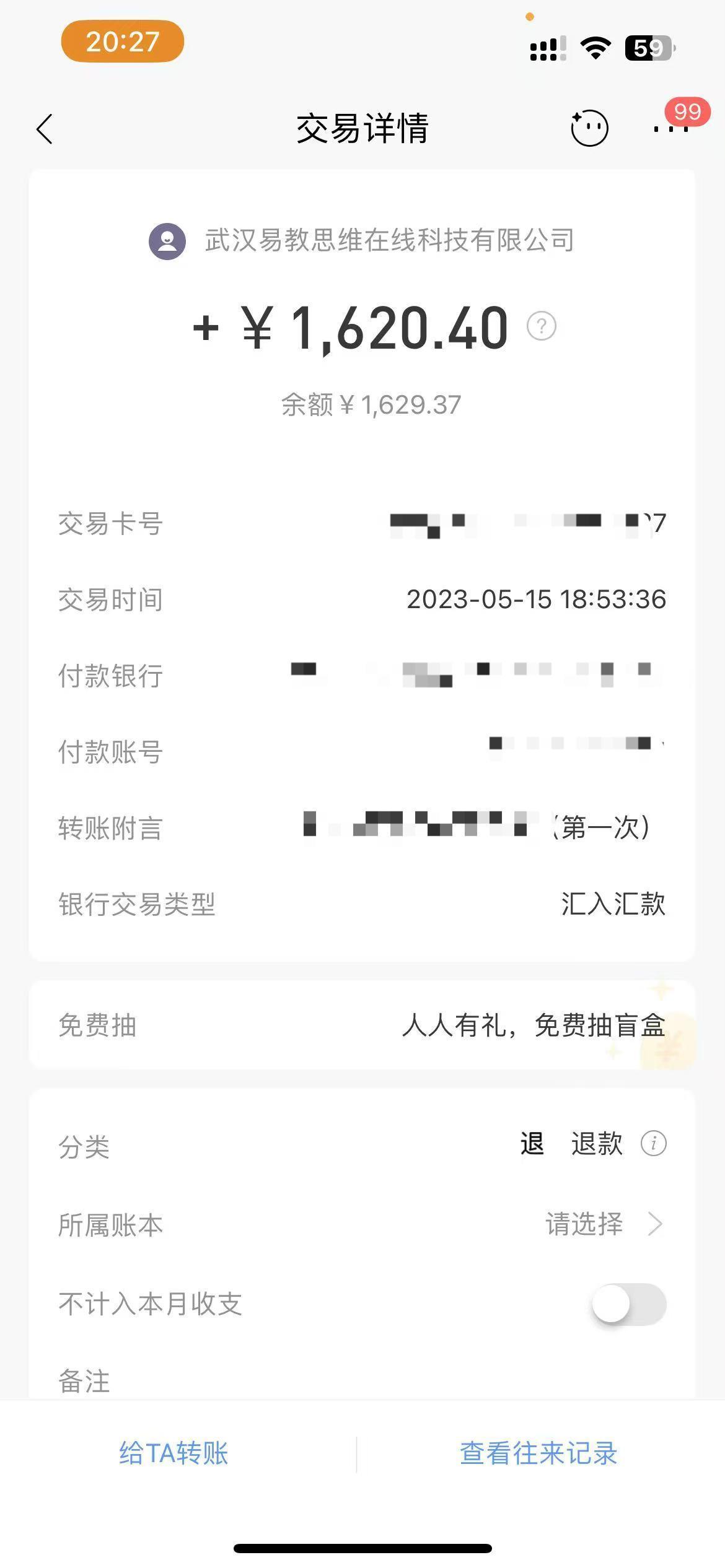 直到2023年5月15日,距离双方签订退款协议的时间已过去了快17个月,曹女士终于收到了该机构的第一笔退款,金额为1620.4元。面对剩余未退的6481.6元,曹女士再次联系对接老师时,对方以“退款流程未走完,正在排队”为由拖延,到最后,对方对曹女士发的信息已置之不理。