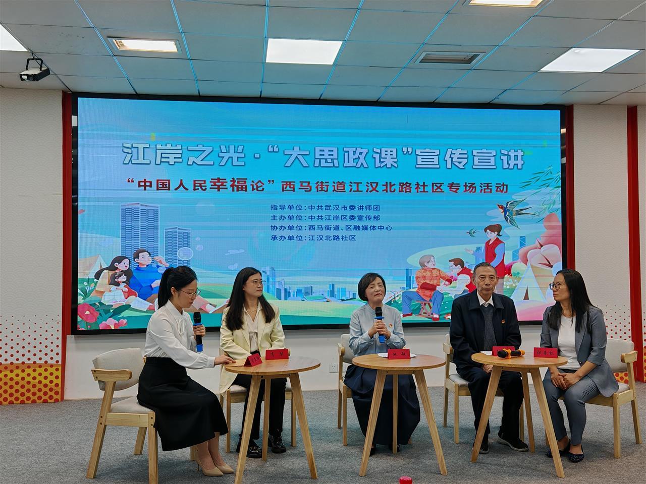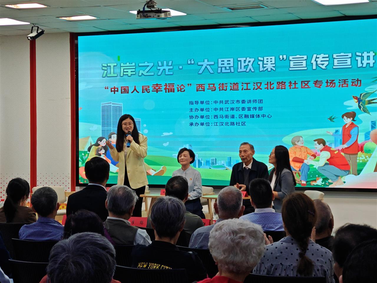 9月26日上午,江岸之光·“大思政课”宣传宣讲之“中国人民幸福论”西马街道江汉北路社区专场活动精彩开启。七旬老党员任永德等4位代表结合自身经历共话幸福。