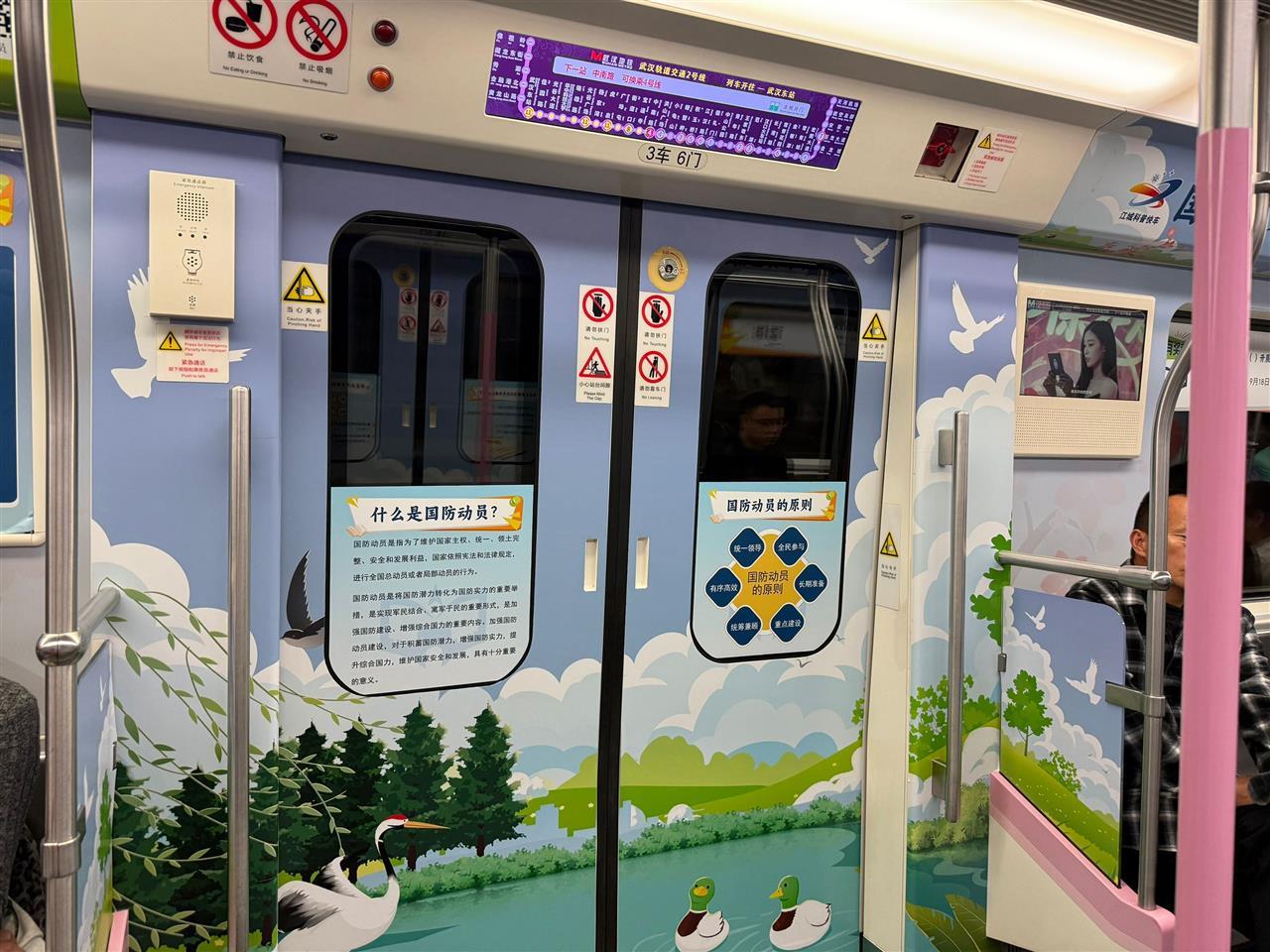 武汉地铁2号线贯穿武汉东西,途经天河机场、汉口火车站、江汉路、洪山广场、光谷广场等重要地段,客流量大,覆盖面广。如今,这条交通动脉将被赋予新的使命,让“心系国防、有你有我”“居安思危、警钟长鸣”的国防教育氛围随列车传递到城市的每个角落。