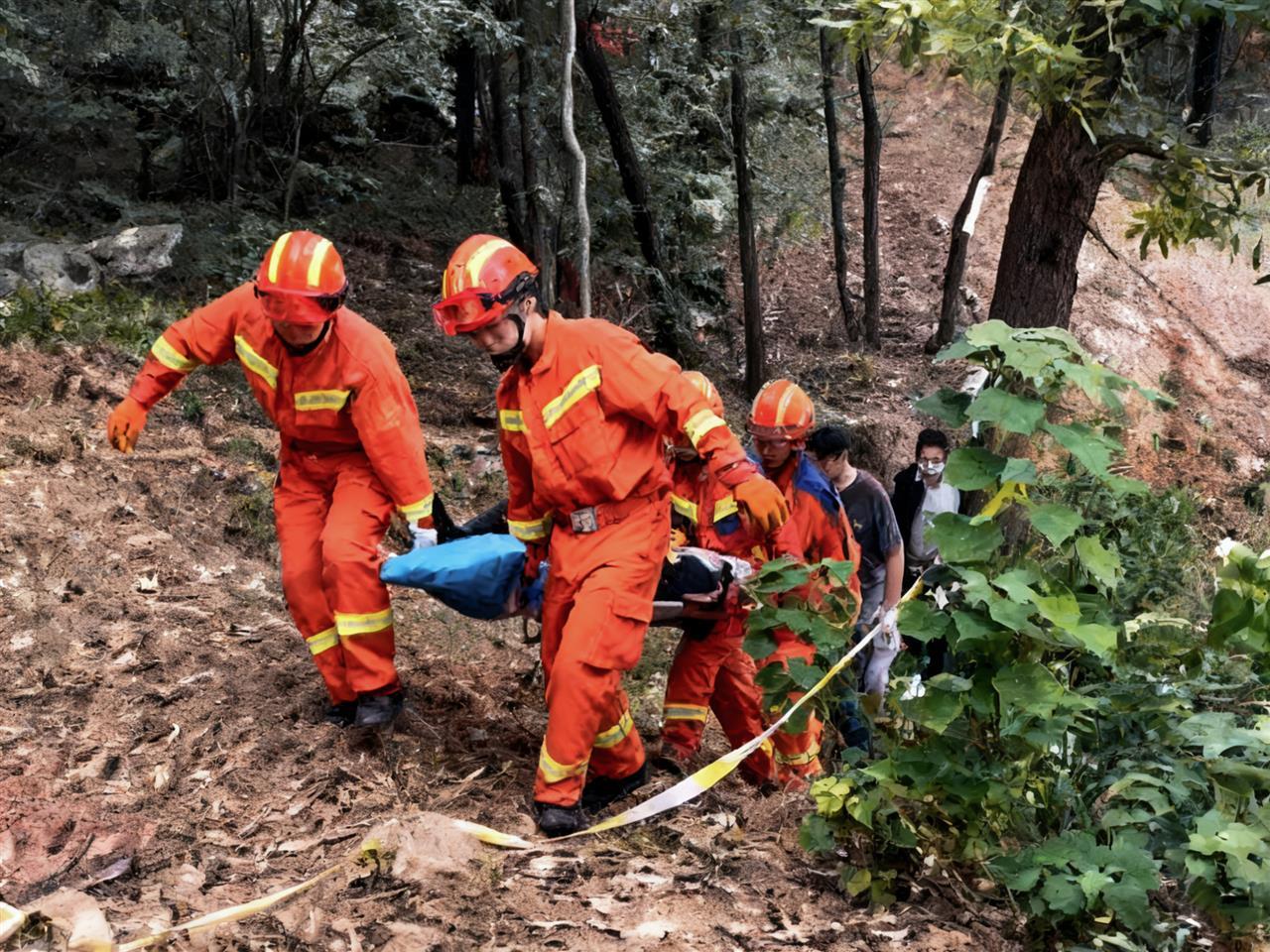 9月24日13时58分,在武汉市蔡甸区索河街道天王山上,一名女子和两位同伴下山途中,因山路湿滑不慎崴伤左小腿无法行走。武汉市消防救援指挥中心接到报警后,立即调派永安小型消防救援站5名消防员赶赴现场处置。