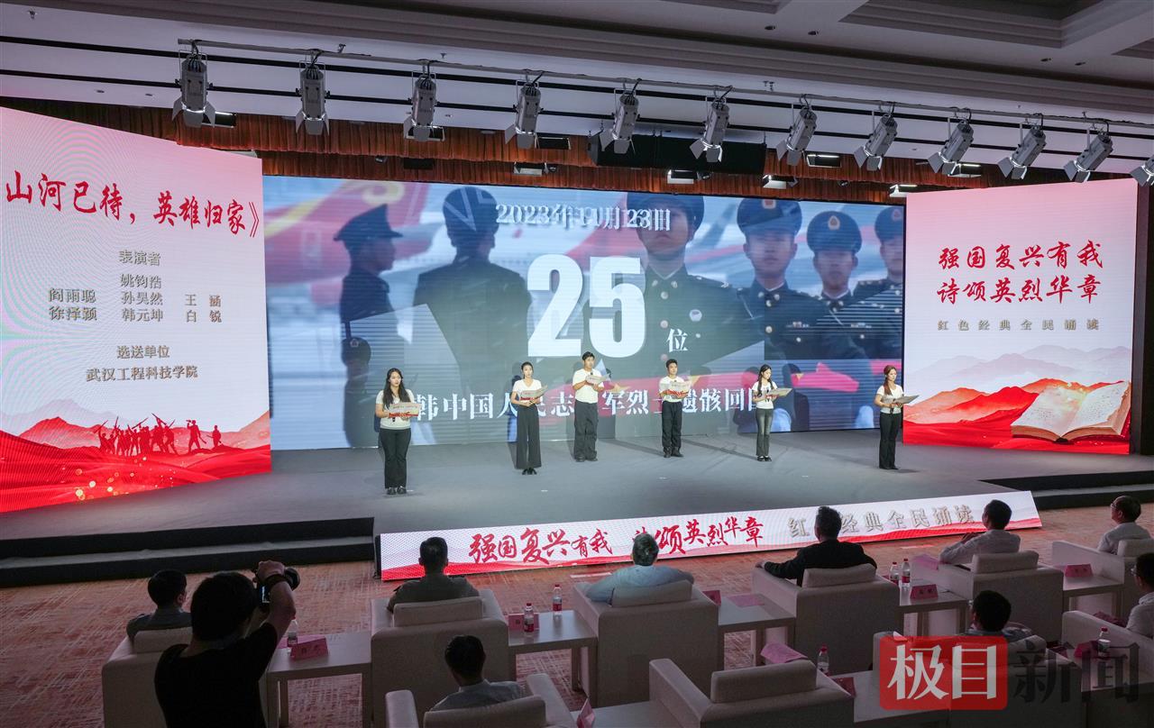 9月27日下午,武汉市“强国复兴有我·诗颂英烈华章”红色经典全民诵读活动圆满落下帷幕。省退役军人事务厅、市委宣传部等单位负责同志,市退役军人事务系统、团市委系统代表,英烈褒扬专家委员及参赛获奖选手等200余人齐聚现场,共同聆听集中展示诵读,共忆英烈事迹。