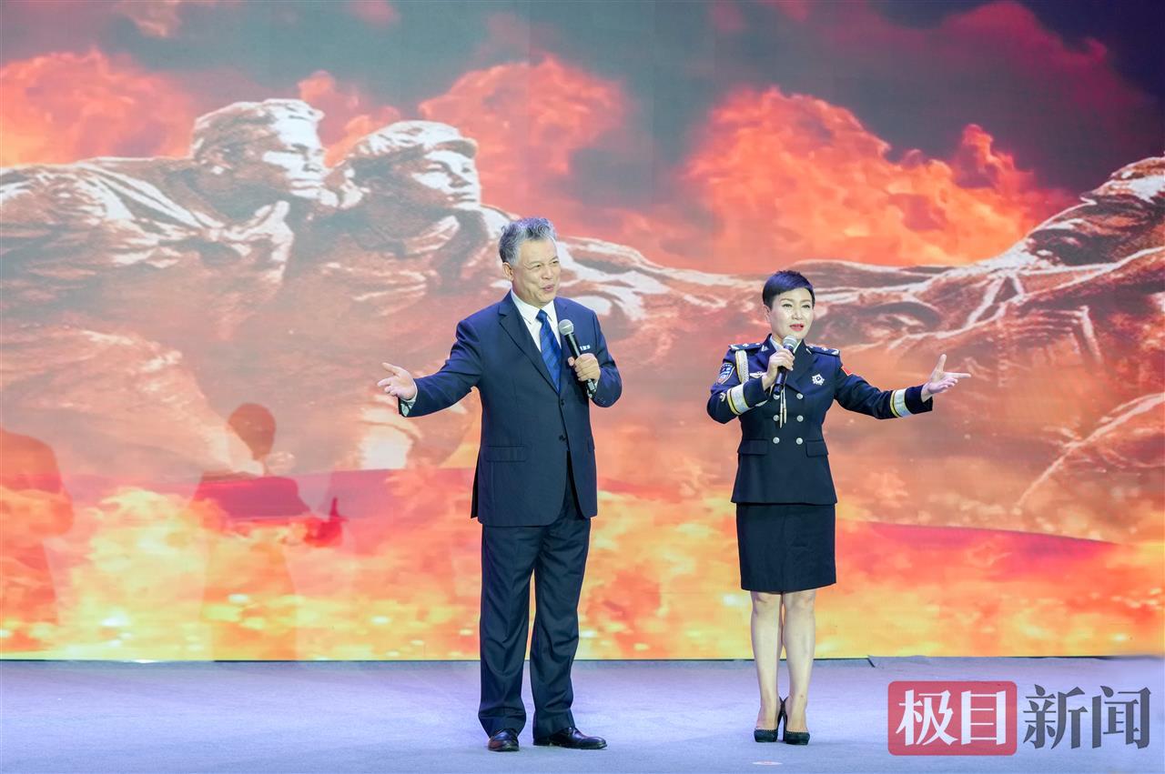 湖北省朗诵艺术家协会会长谢东升与武汉公安朗诵协会会长赵霞联袂朗诵的《英雄》,深沉或高亢的语调瞬间将观众带入缅怀英烈的氛围中,更是将现场气氛推向高潮。