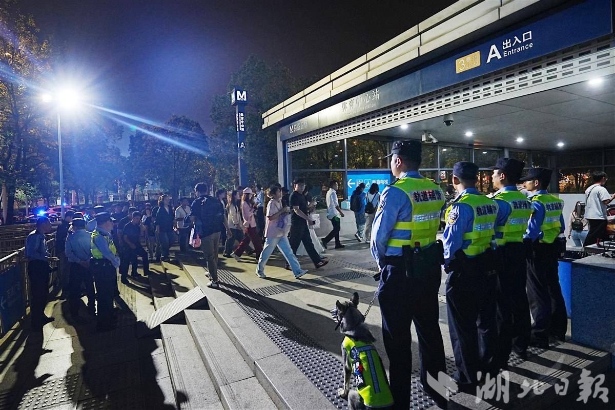 调整A、B口和站厅至站台所有手扶电梯为下行、打开A、B回形通道、设置17组闸机为进站、增开无包快检……晚上10时30分,演唱会结束歌迷陆续返程,体育中心站客流陆续增大,驻站民警、车站工作人员早已全副武装,所有备用列车在指定位置等候。李元元安排好所有工作后,和多名工作人员一起在A口处分流部分乘客从B口进站。