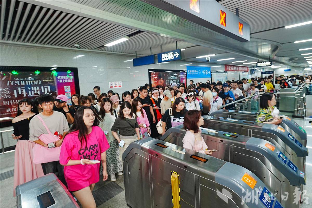 26日夜晚,地铁3/6号线东风公司站也迎来进站客流小高峰,车站启动预案,保障乘客通行快速有序,期间6号线共加开3趟临客。