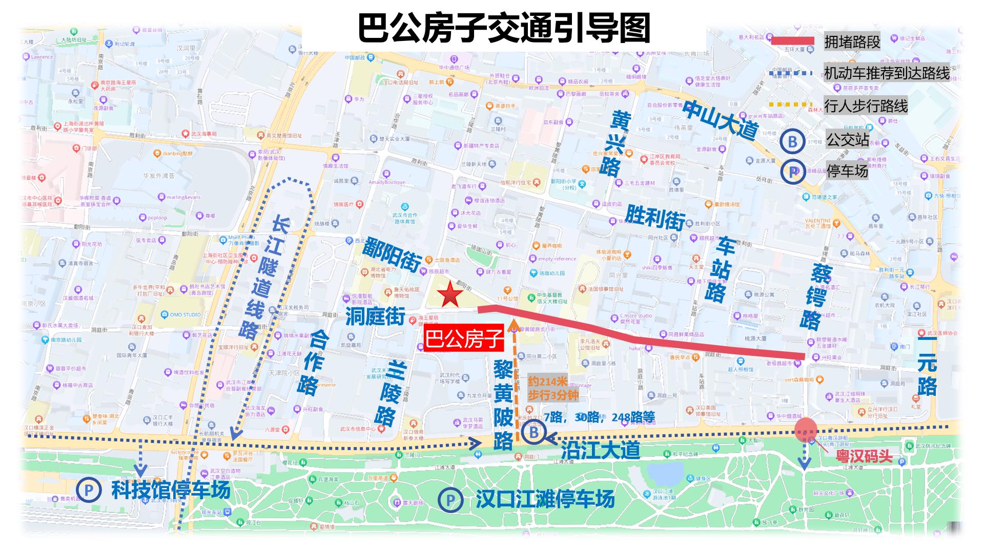 武汉关、汉口江滩、江滩1号门周边,中午起人流车流逐步增加,13:00—22:00受黎黄陂路出租车、网约车及社会车辆影响,沿江大道(一元路至武汉关段)极易车行缓慢;江滩停车场需求激增,沿江大道(武汉关至一元路、芦沟桥路至滨江苑三期)主线车流受闸口进江滩车辆排队影响,通行将明显放缓。