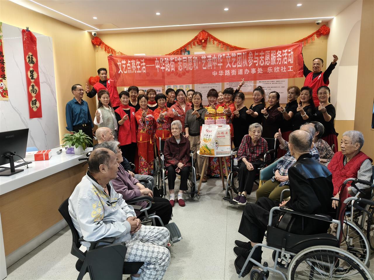 9月25日,武汉武昌区中华路街道“志同愿和·艺满中华”文艺志愿服务团队,携手武昌区社区教育学院中华路街分校的志愿者,共同走进辖区瑞福安养老院、楚材康寿养老院、户部巷社区瑞福年华颐养中心,开展以“弘扬尊老敬老传统美德,传递社会温暖”为主题的志愿服务活动,文艺志愿者为长者们送去节日的问候与社会的关怀。
