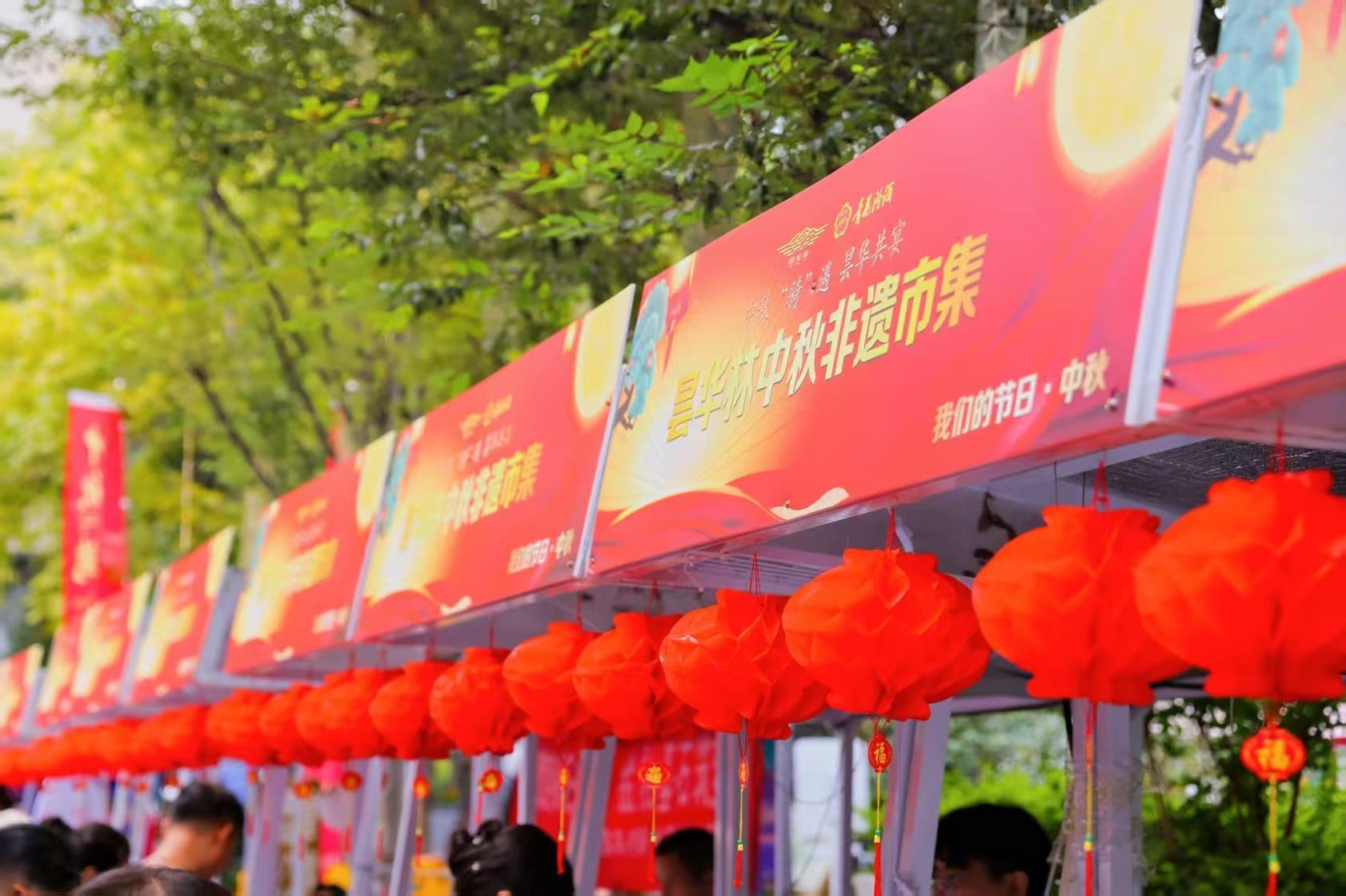 非遗集市同样人气高涨,剪纸、漆扇、做糖人等传统手工艺吸引了众多游客和居民驻足体验;亲手在中秋主题明信片上盖上纪念章,送给亲朋好友特别有意义。