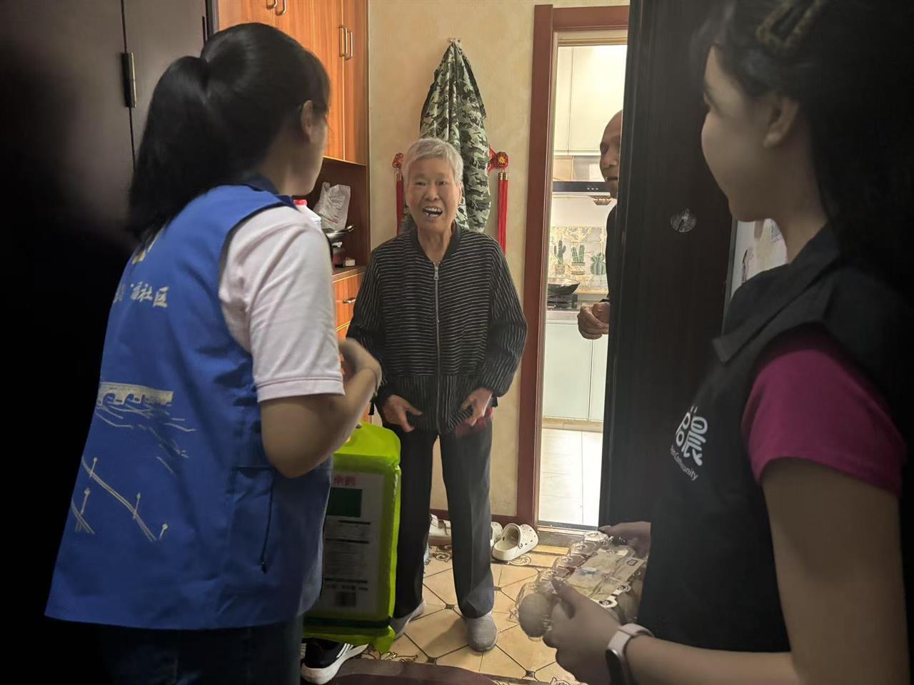 演出结束后,志愿者们并未停下脚步。在社区工作人员的带领下,大学生和老年人舞蹈队成员分组前往社区困难家庭,为他们送去米面和鸡蛋等生活物资。