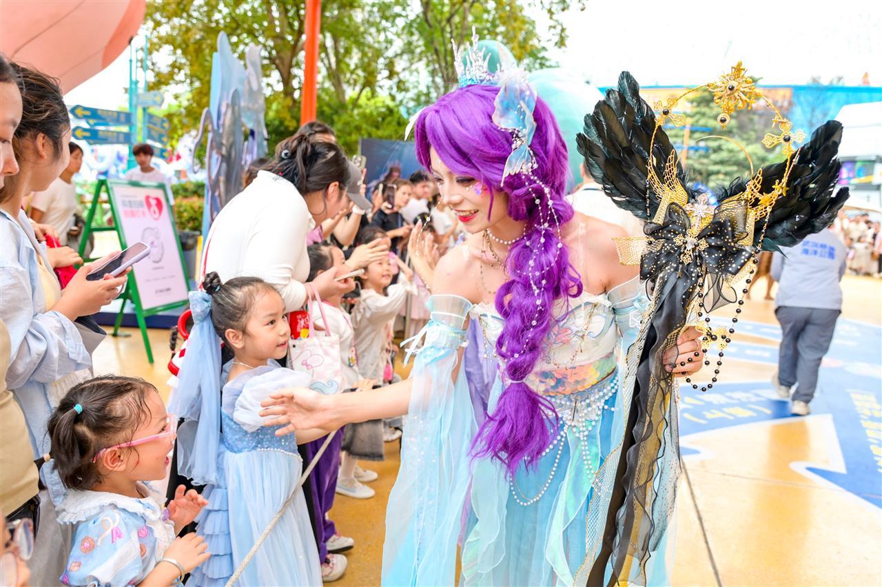 庆典广场上同样人气爆棚。COS小精灵、珍珠妆仙女等各色NPC穿梭在人群之中,通过猜拳、打卡、射箭等趣味游戏与游客互动,获胜者还能赢得精美礼品。现场瞬间化作一片欢乐的海洋,而随后举行的潮玩狂欢大巡游,更是将节日氛围推向了高潮。