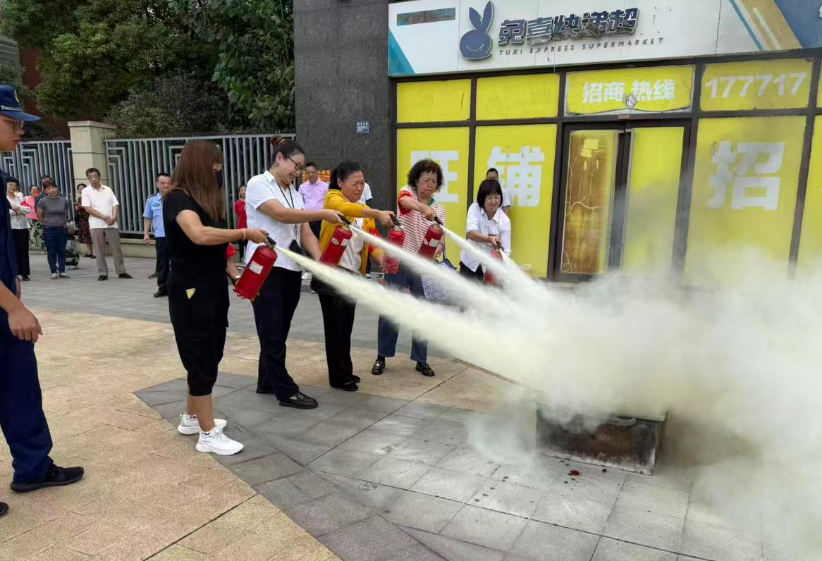 最后开启实战演练模式。模拟火情警报响起后,居民在工作人员的引导下弯腰捂鼻,沿安全通道有序撤离至指定区域。灭火实操环节,参与者轮流使用干粉灭火器扑灭油盆火源,物业工作人员同步演练消防水带连接,确保“学得会、用得上”。
