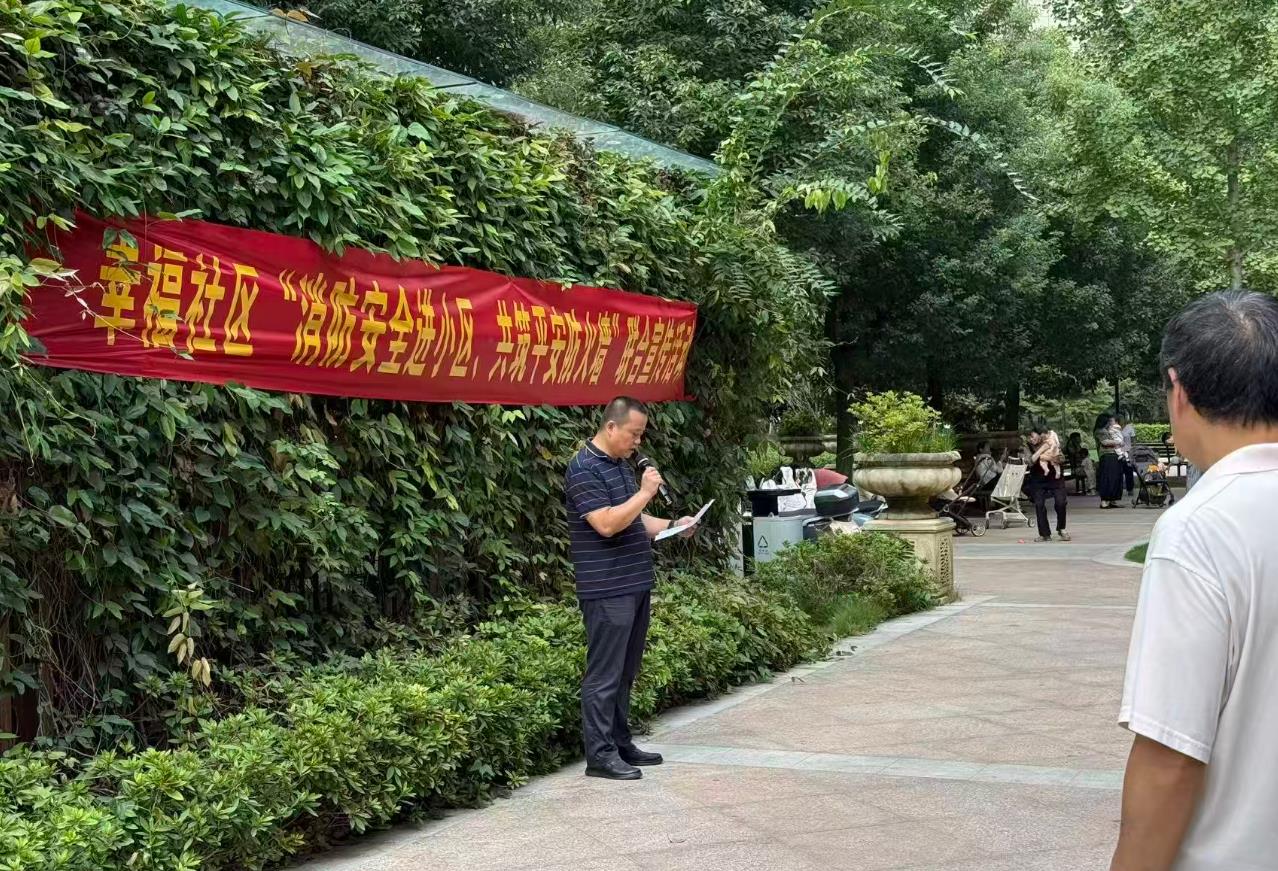 首先幸福社区夏书记介绍本次宣传活动的目的和意义,并明确了活动的重要性,消防安全是社区治理的“生命线”,更是保障居民幸福生活的“底线”,通过此次活动希望居民朋友们能主动学习消防知识,自觉遵守消防法规,积极参与社区消防工作,成为消防安全的“守护者”和“宣传员”。