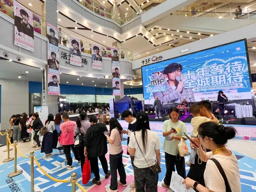 武汉经开万达广场距武汉体育中心仅一街之隔,是“杰迷”观演路上距离最近的“补给站”。在武汉经开万达广场,“周董”巨型爱心气模空降中庭广场,限定店每日开放应援打卡,各类官方周边、应援福利应有尽有。武汉经开万达广场市场经理厉长威说,9月27日一天接待9万多市民,同比增长55.7%;销售额近300万元,同比增长25.58%。