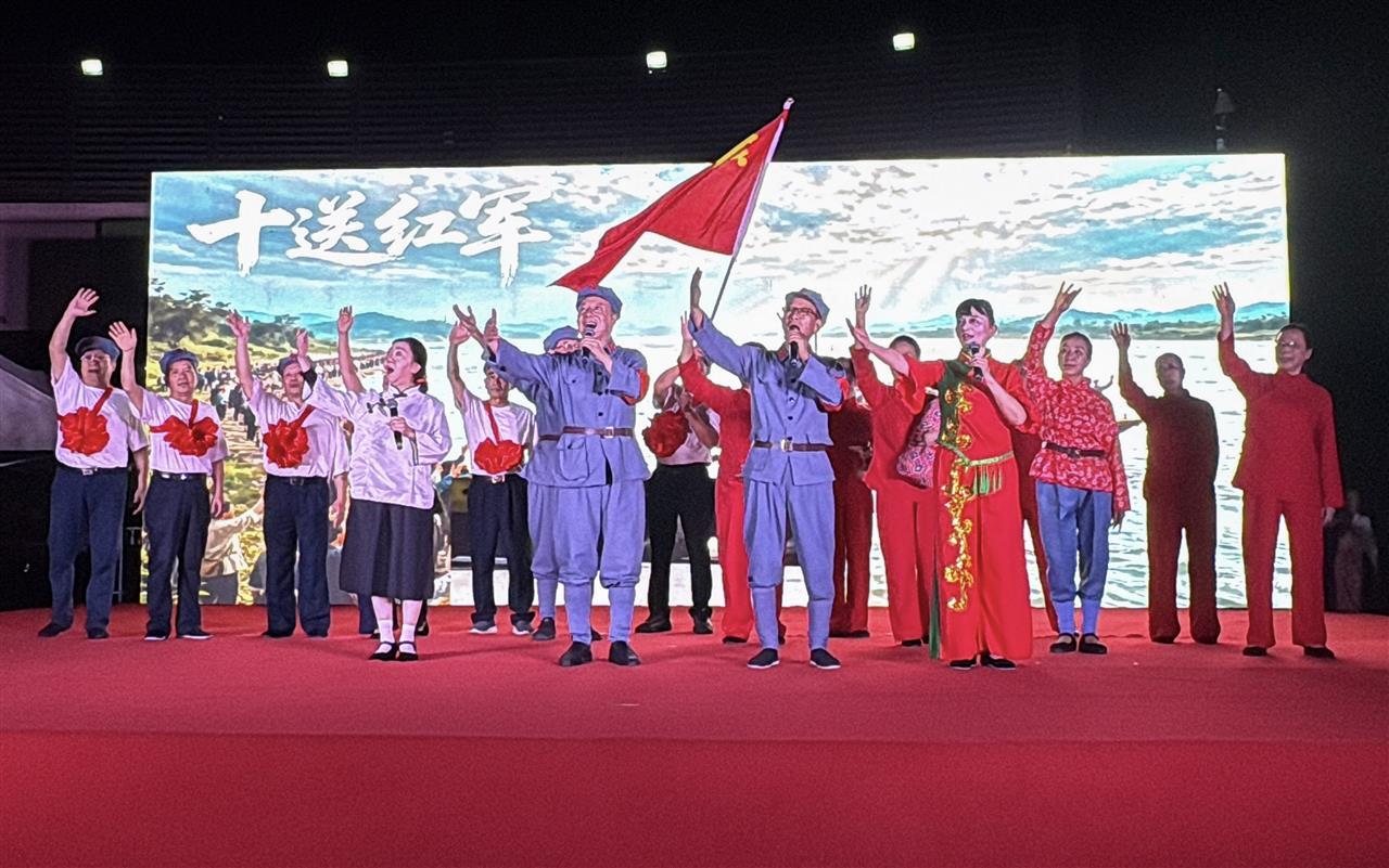 “一送里格红军,介支个下了山……”熟悉的旋律响起,来自社区党委的舞台剧《十送红军》的演员们身着蓝布军装与碎花布衣,将革命年代军民鱼水情演绎得淋漓尽致,将不舍与牵挂融入每一个动作;身着绿色迷彩的阿姨如铿锵玫瑰般为我们带来舞蹈《当那一天来临》;爱家民乐队带来经典曲目《地道战》,他们用各色各样的乐器再现了地道战的智慧与勇气;雨中寒梅显风骨,传统服饰展华彩,爱家时装模特队带来了一场《雨中梅》文化盛宴;在欢声笑语中接近尾声,红星合唱团的《保卫黄河》瞬间将汇演再次推至高潮,激昂的歌声如黄河奔涌,台下观众忍不住起身合唱,声音此起彼伏,爱国情怀在歌声中愈发浓烈;最后一曲大合唱《我和我的祖国》温暖了整场文化艺术节,对祖国的热爱、对社区的归属感都在空气中交融。