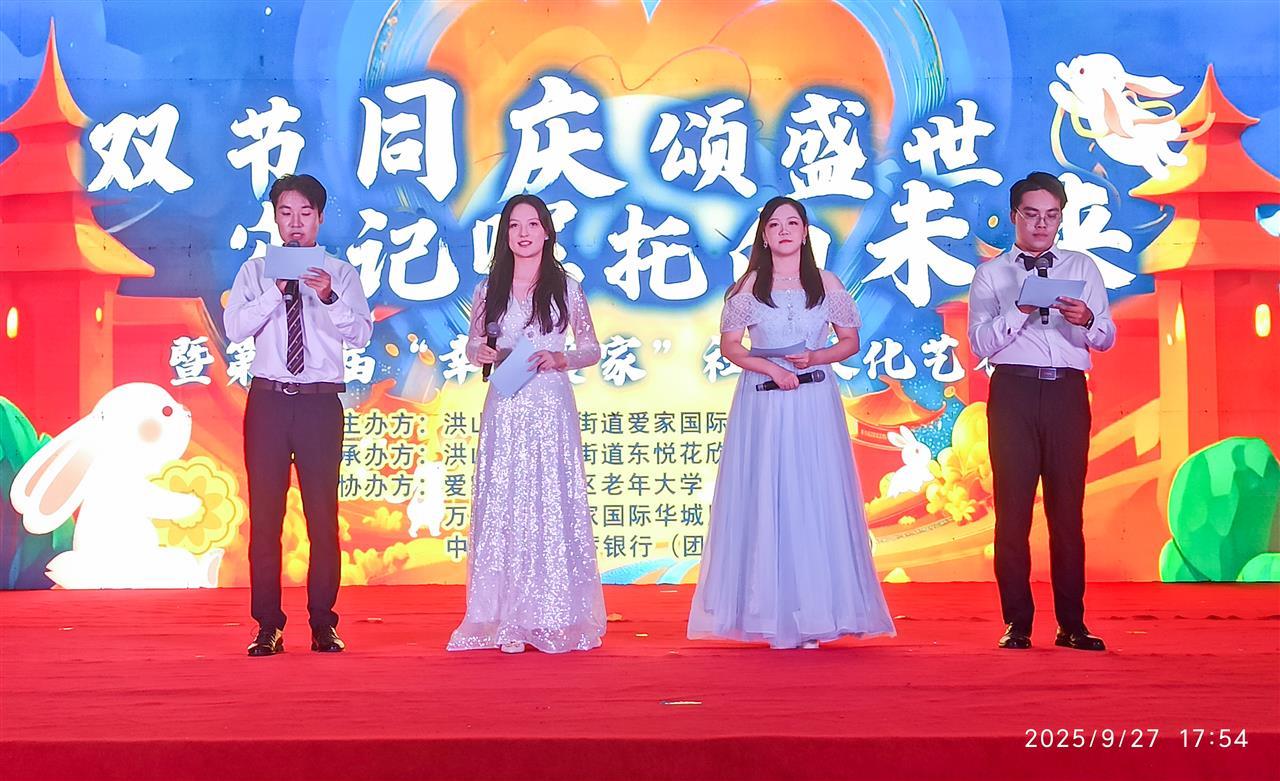 金秋迎双节,文化润民心。9月27日晚,在中秋月圆与国庆华诞双节即将交汇的美好时刻,洪山区和平街爱家国际社区举办“双节同庆颂盛世,牢记嘱托向未来”暨第二届“幸福爱家”社区文化艺术节活动。辖区1000余名居民欢聚一堂,共赴这场融合节日喜庆与文化魅力的盛会,让中华传统文化与爱国情怀在社区沃土上深深扎根。