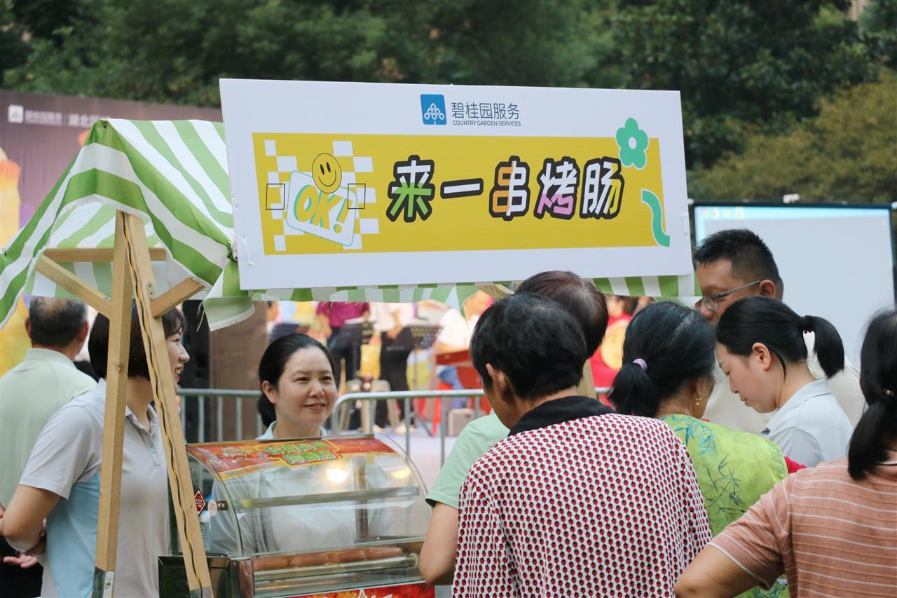 除了视听盛宴外,碧桂园物业还贴心设置了免费小吃摊位。香甜可口的爆米花和香气四溢的烤肠吸引了众多大小朋友排队领取。工作人员热情周到的服务,让每一位业主都感受到了“家”的温暖。这些看似微小的细节,却极大地增强了活动的参与感和幸福感,业主们一边品尝美食,一边欣赏节目,互相问候祝福,场面其乐融融。