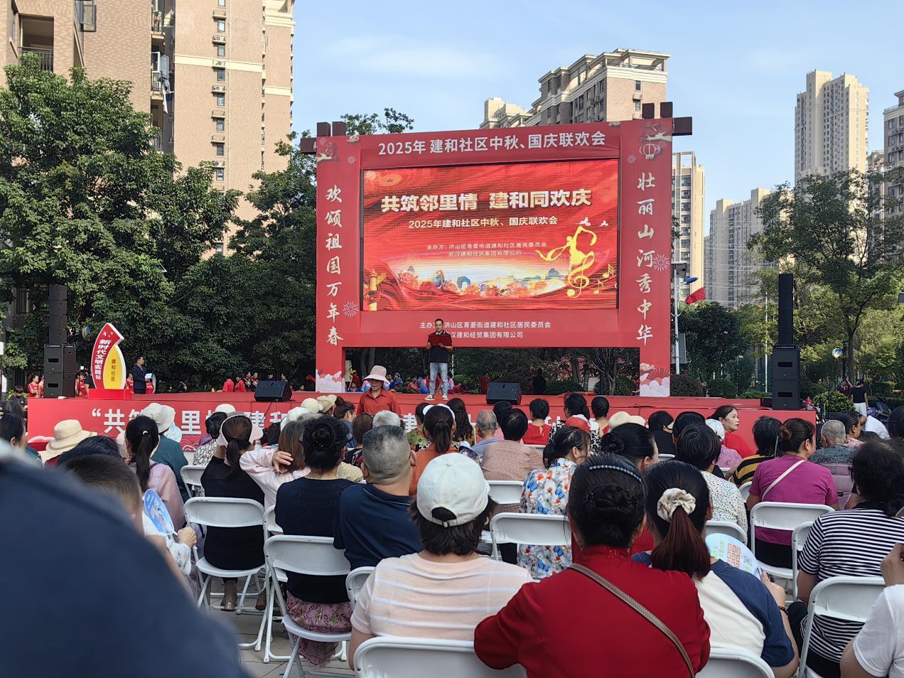 9月28日下午,由武汉市洪山区青菱街道建和社区、建和经贸集团联合举办的“共筑邻里情、建和同欢庆”中秋国庆联欢会在建和世家小区文化广场顺利举办,活动以群众喜闻乐见的艺术形式礼赞祖国发展,为辖区居民送上节日祝福,进一步厚植爱国主义情怀。