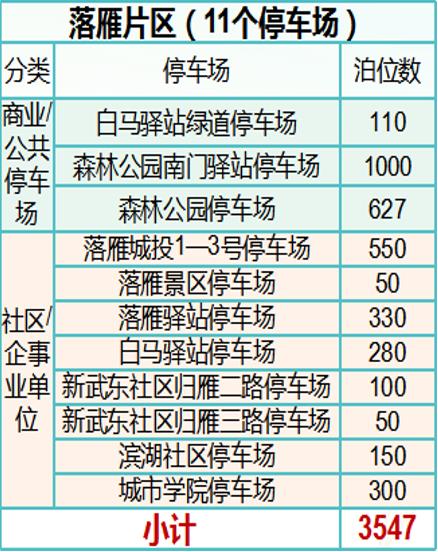 落雁片区设有11个停车场,共3547个停车泊位可供选择。