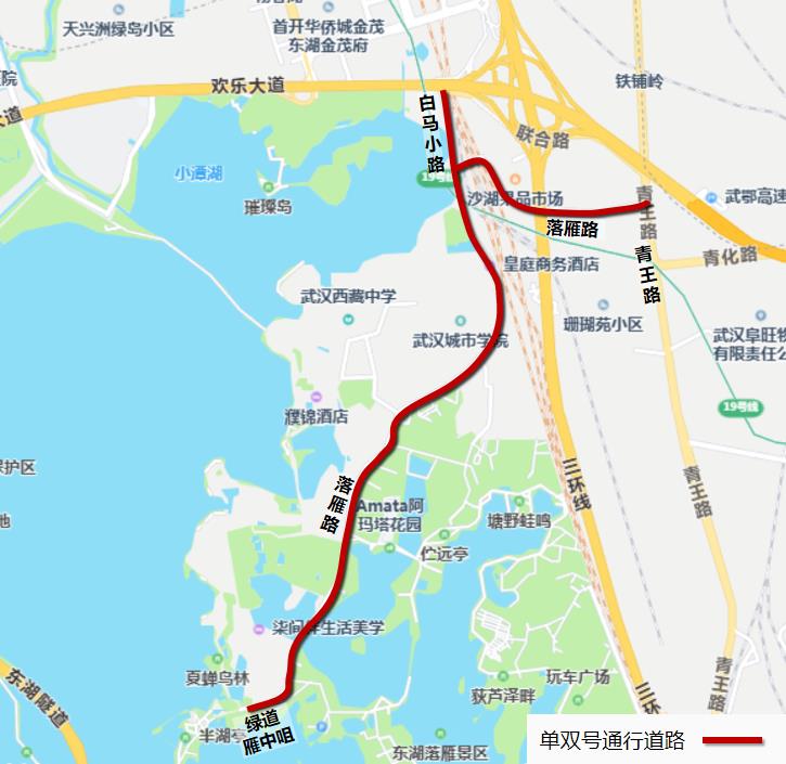 白马小路(欢乐大道至落雁路)、落雁路(青王路至东湖绿道雁中咀)。