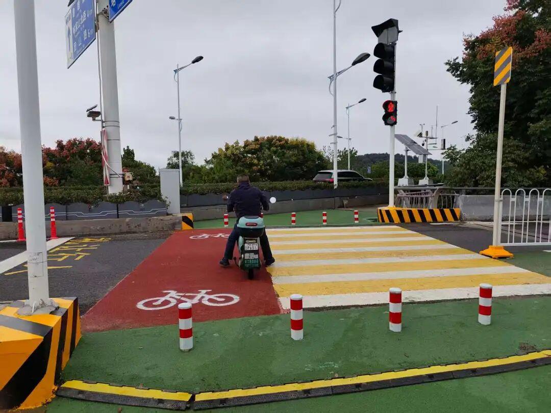为保障游客快达慢游,从具体切口破题,东湖风景区交通大队协调管委会相关部门推进光谷大桥慢行道改进项目,增设斑马线、信号灯,把两侧慢行道连起来;同时增设了电子警察,对闯红灯违法行为进行抓拍,既安全又顺畅。
