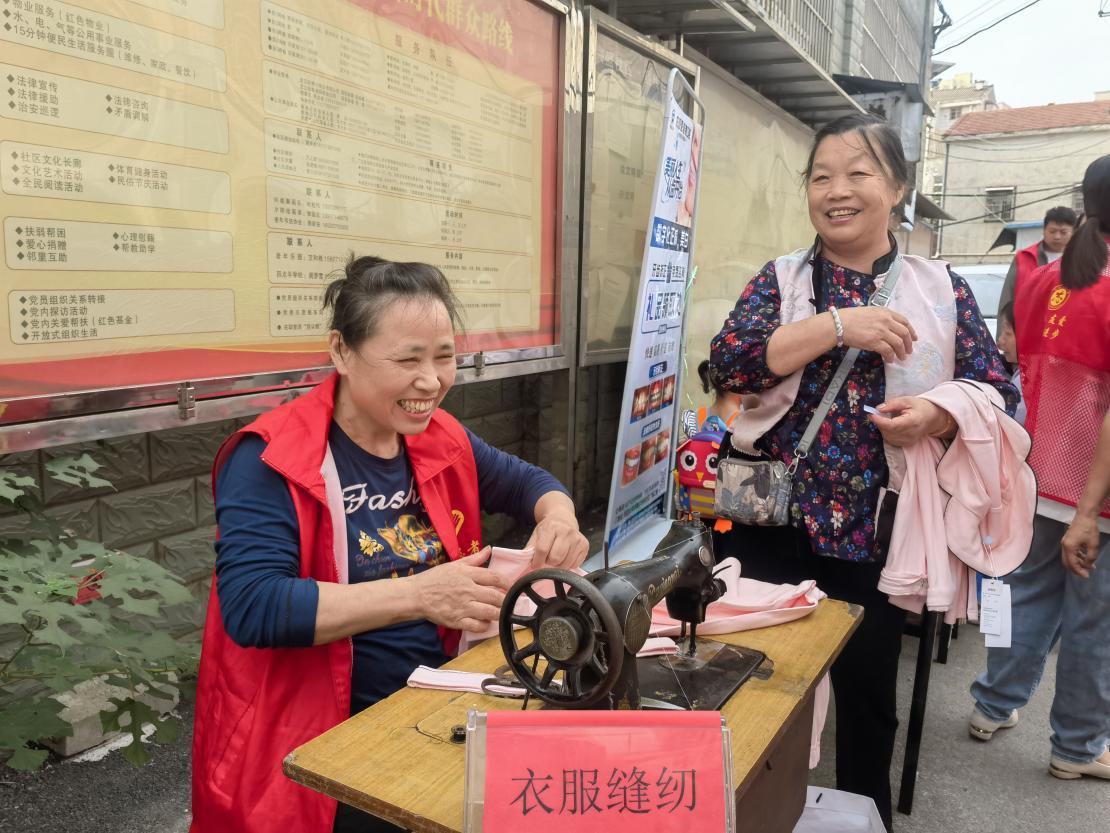 衣服缝纫摊位前,裁缝师傅熟练地为居民修补衣物破损处、更换拉链、调整裤脚;磨剪磨刀摊位上,师傅们手持砂轮,认真打磨每一把钝损的剪刀、菜刀,打磨后的刀具重新变得锋利;鞋子修补摊位前,师傅们细致粘补开裂的鞋底、更换磨损的鞋跟,让原本闲置的旧衣物、旧刀具、旧鞋子“重获新生”,得到居民一致认可。