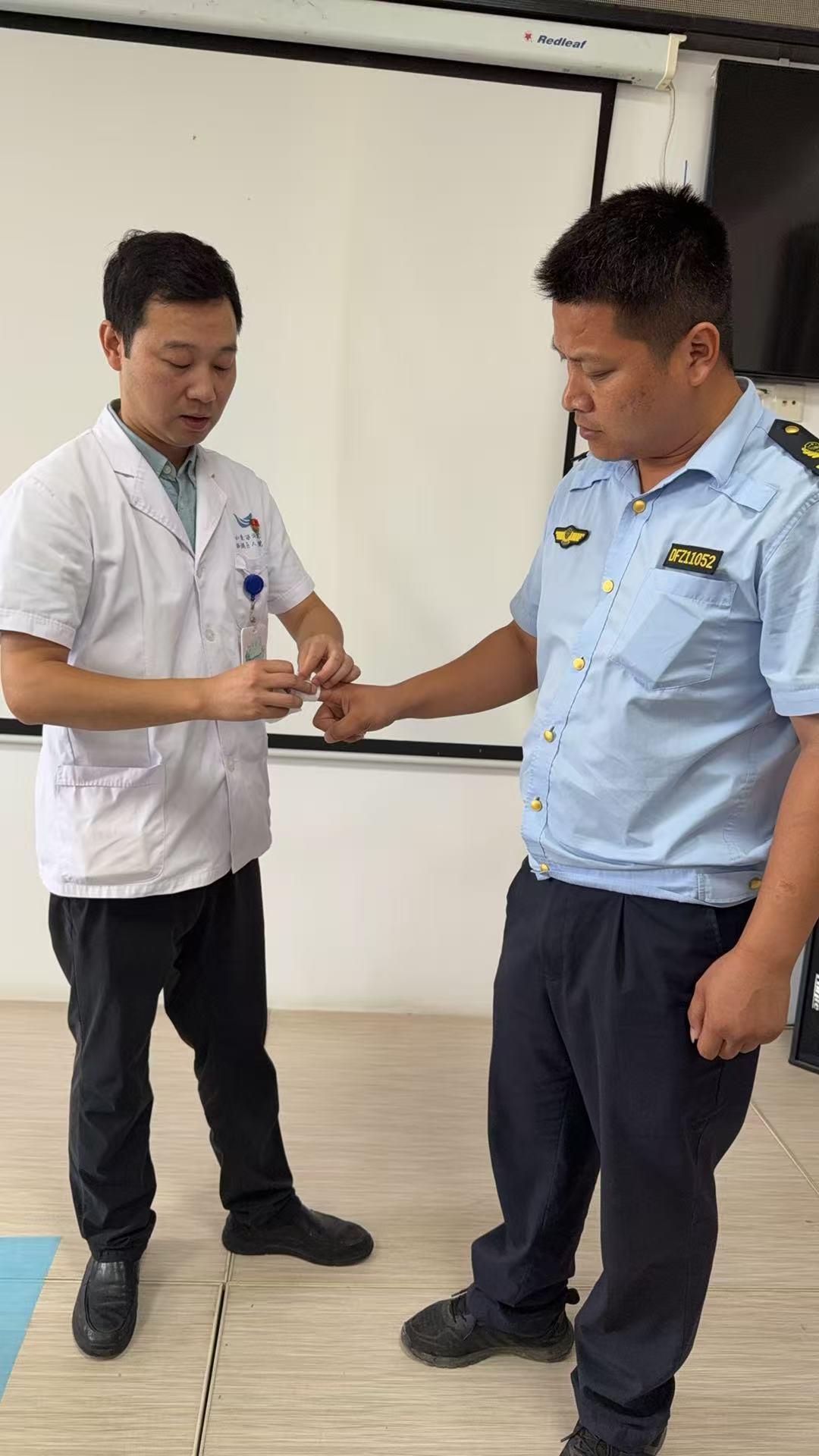 守护群众生命安全是重中之重,9月11日,中心特邀东西湖区人民医院专家开展医疗急救知识培训。专家结合执法场景中可能遇到的急救需求,以“理论讲解+实操演示”的形式,细致教学“常见急救场景识别”“心肺复苏操作步骤”“外伤止血包扎技巧”“突发疾病初步处置流程”等内容,现场指导执法队员掌握基础急救操作,使队员们处置突发健康事件的能力得到提升,为“执法为民”增添安全保障。