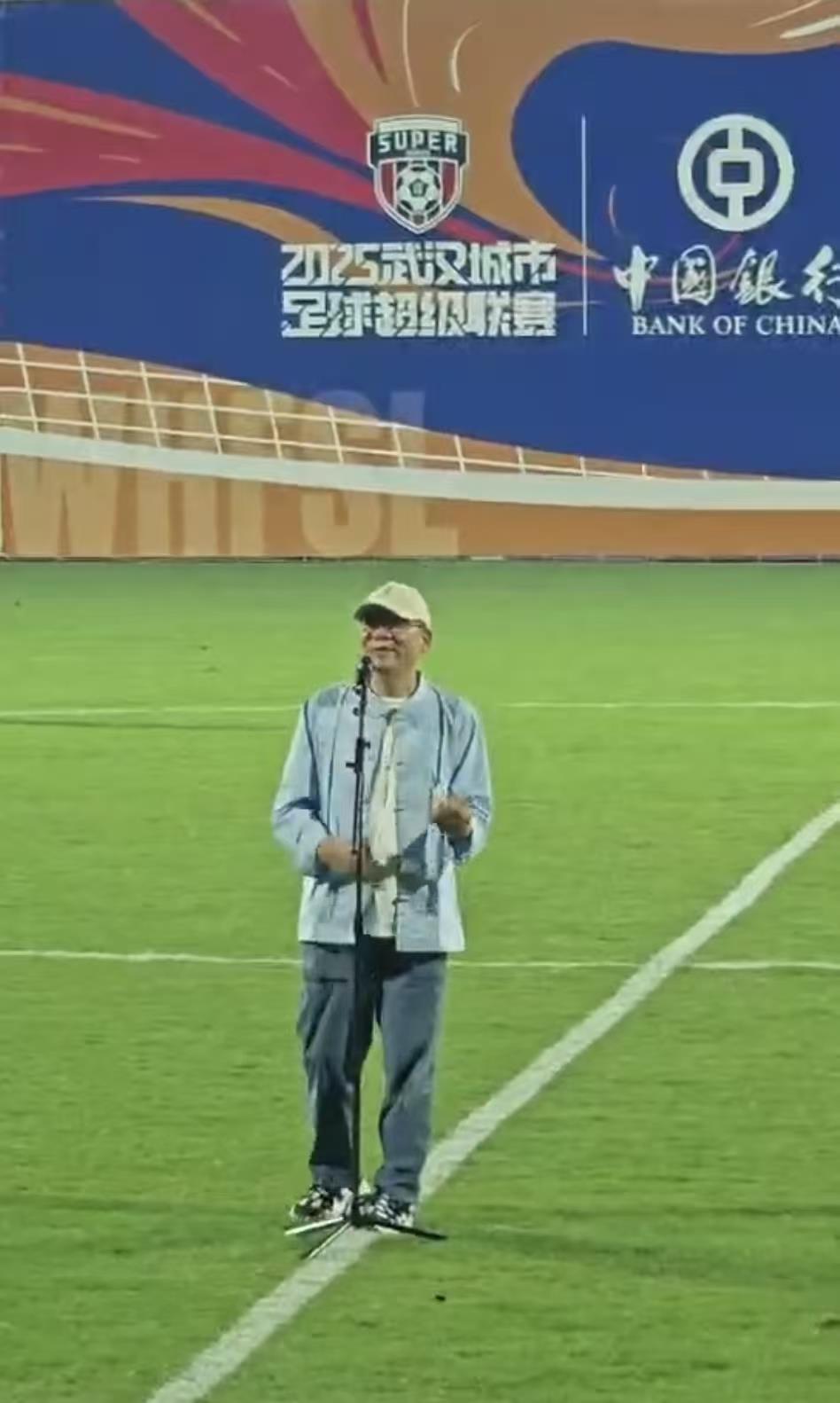 9月29日19点,汉超汉口赛区第二阶段比赛中,江岸区队坐镇主场与东湖高新区队率先展开对决。中场休息时,武汉本土音乐人冯翔现场演绎了一首自己创作的歌曲《我在黎黄陂路的街角唱秋天》。歌词以黎黄陂路为背景,融入了巴公房子、江滩、吉庆街等武汉地标,通过“缓缓路过的人流”“江岸的桂花正香”等意象描绘了汉口的历史变迁与现代风貌。