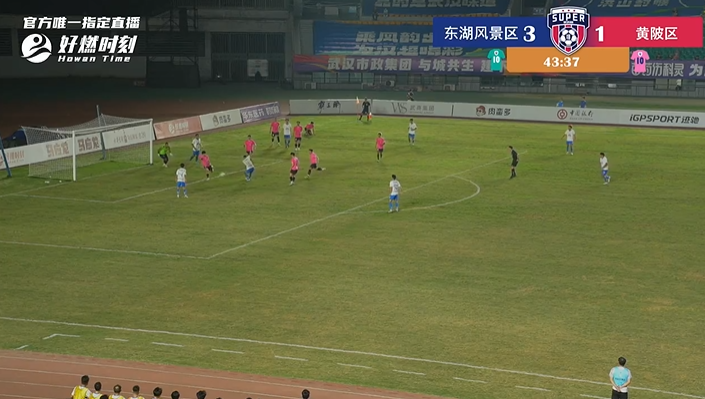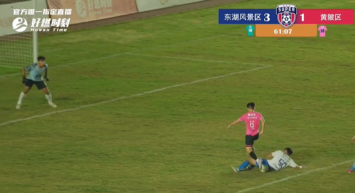 黄陂区队55号替补登场队员争抢落点过程中,造成一次犯规,给对手送上一次右路定位球机会。东湖风景区队防守过程中拉拽犯规,黄陂区队同样获得一次定位球机会,面对黄陂区队员配合,东湖风景区队门将提前预判对手意图,将球抱在怀中。