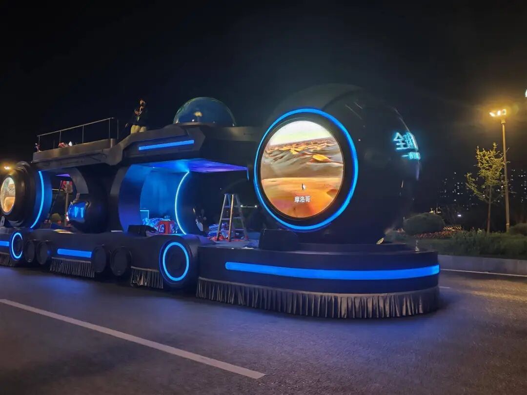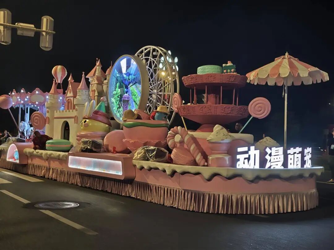 此外,每台花车均配备独立控制系统,由专业车长实时调控音乐、图像与行进速度。为确保安全,花车速度统一控制在5公里/小时。演员配备安全绳与地锁装置,并通过反复彩排实现人车协同。