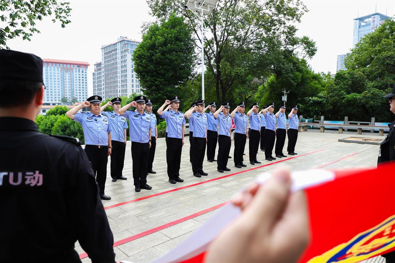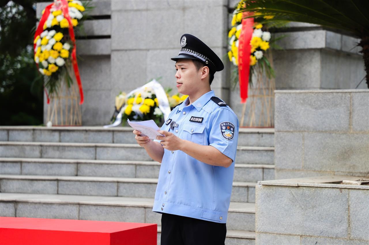 “我是中国人民警察,我宣誓……”夏去秋至,丹桂飘香。施洋烈士纪念碑前,花篮和缎带随风轻扬,警旗在阳光下熠熠生辉,一场庄严的纪念仪式在此举行。