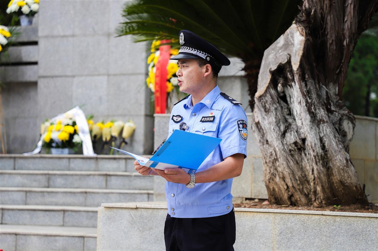随后,在反巡特大队党总支书记汪立伟的领誓下,民警、辅警代表举起右拳庄严宣誓,铿锵誓言在苍松翠柏间回响。