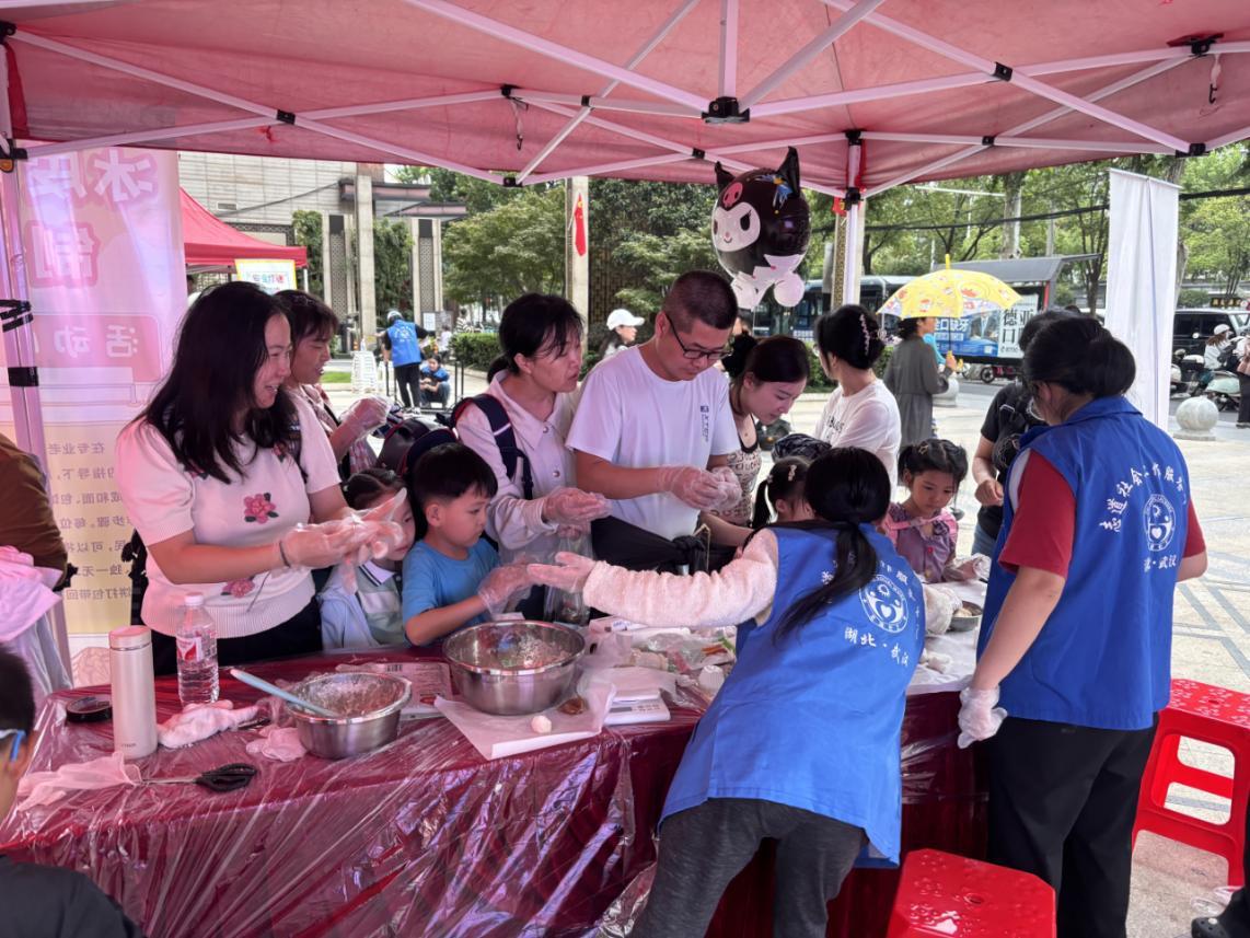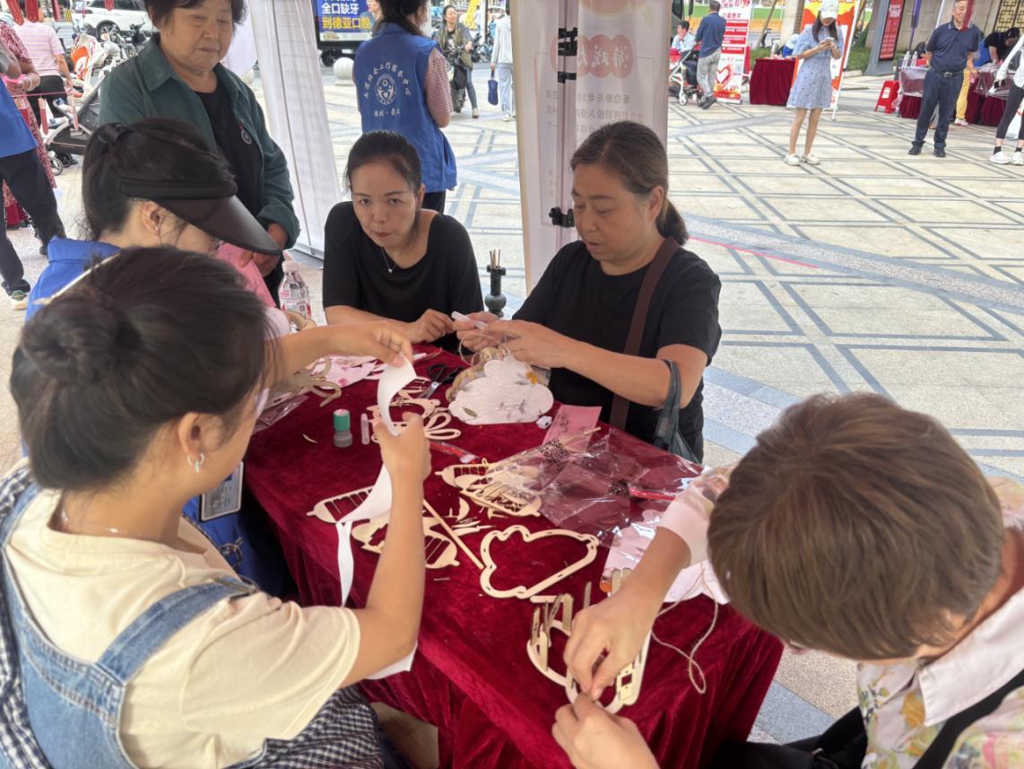 与此同时,活动现场的“中秋传统文化体验区”也人气十足:在“中秋灯谜猜猜看”区域,居民们争相竞猜,在趣味中感受传统文化魅力;“中秋投壶游戏”区欢声笑语不断,大人小孩都沉浸在这一传统游戏的乐趣中;“花草灯制作”DIY区域更是人气爆棚,居民们亲手制作精美花草灯,体验手工艺的乐趣;“冰皮月饼制作与品鉴”区香味四溢,居民们一边学习制作技巧,一边品尝自制月饼,提前感受中秋团圆氛围。