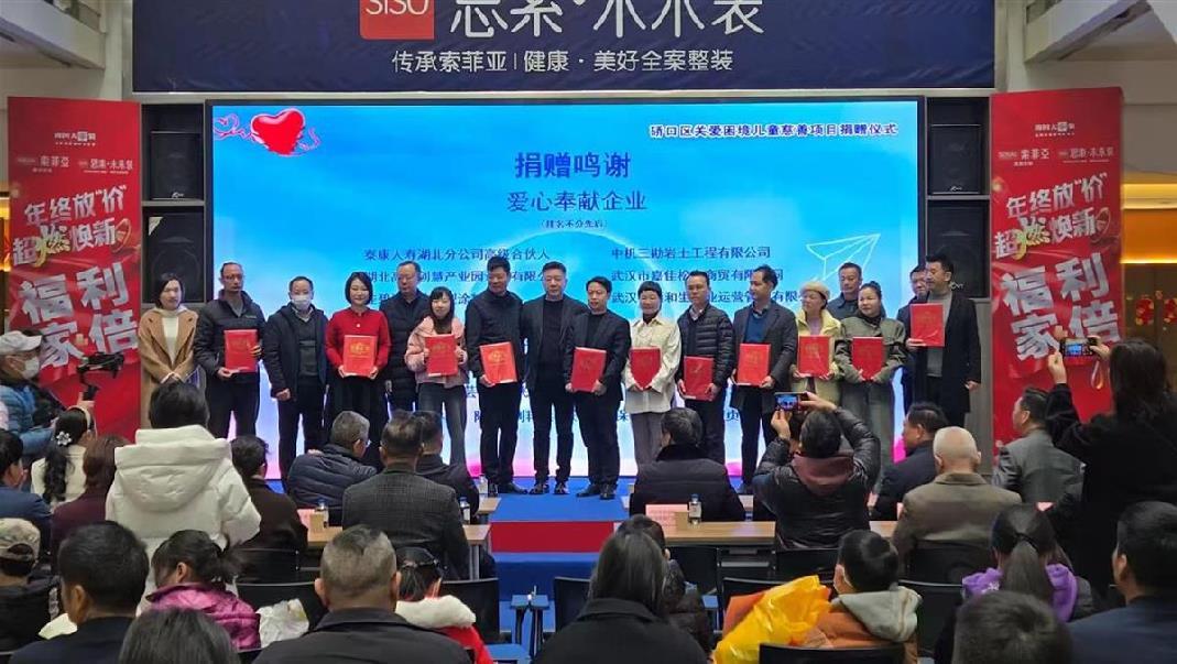 暖冬慰问,情系困境儿童。“硚见未来 关爱困境儿童” 捐赠仪式在南国大家装负一楼大厅举办,硚口区政府副区长夏新、区民政局等多部门领导出席。区工商联召集多家商会协会、爱心企业商户,为困境儿童及监护人代表送上春节慰问金与物资,让孩子们在寒冬中感受到温暖与关怀。