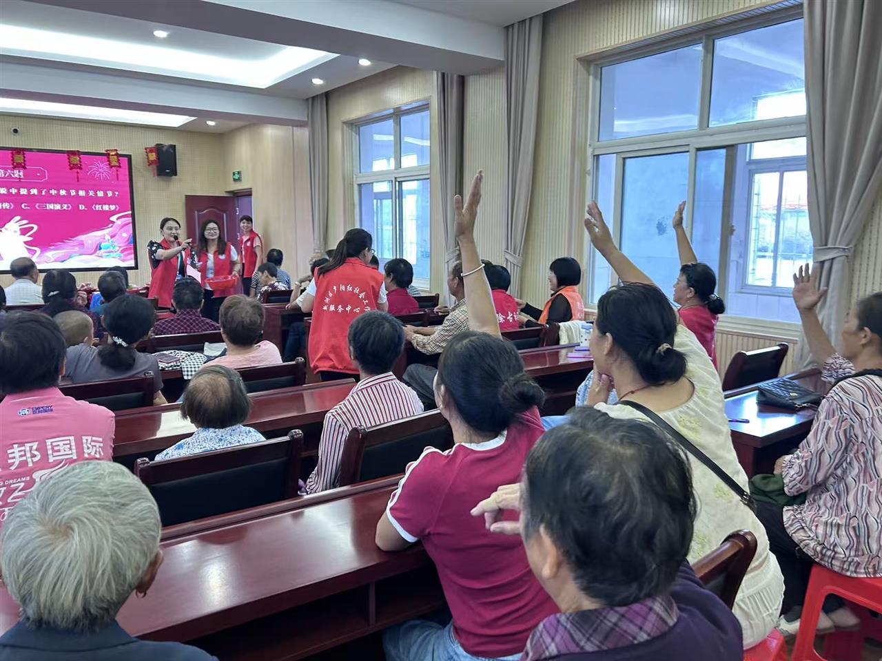 讲解过后,有奖知识问答环节顺势开启,“中秋传统食物有哪些?”“但愿人长久的下一句是什么?”一道道贴近生活的题目抛出,老人们踊跃举手、积极抢答,答对者接过小奖品时,脸上绽放的笑容如同秋日暖阳,瞬间点燃了现场热闹氛围。
