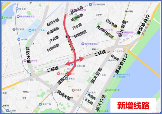 跨线桥开通后,后湖、百步亭片区居民在早高峰将新增三条出行线路: