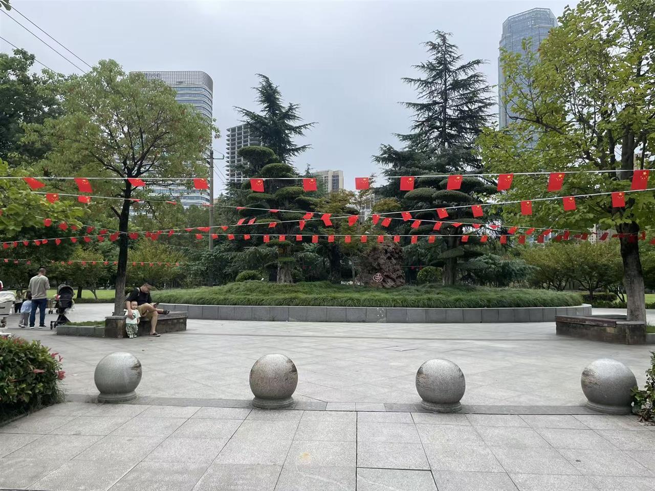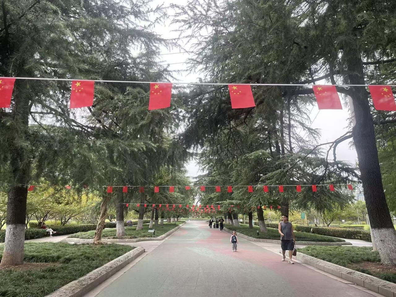 和平公园以细致的环境布置,将国庆喜悦融入一草一木、一景一旗之中,让市民在国旗的红晕里共庆新中国华诞,在馥郁花香中感受国家富强与生活美好。