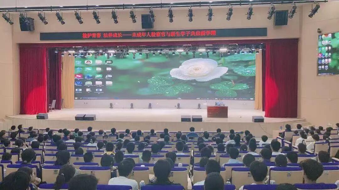 为切实提升未成年人反诈防骗意识,筑牢校园安全法治防线,9月24日下午,武昌区人民检察院第七检察部干警俞梦涵、杨鹏明走进武汉市第二职业教育中心学校,为700余名高一新生带来主题为“检护青春,法伴成长——未成年人检察官与新生学子共启新学期”的反诈教育专题报告会,以法治力量为新生成长保驾护航。