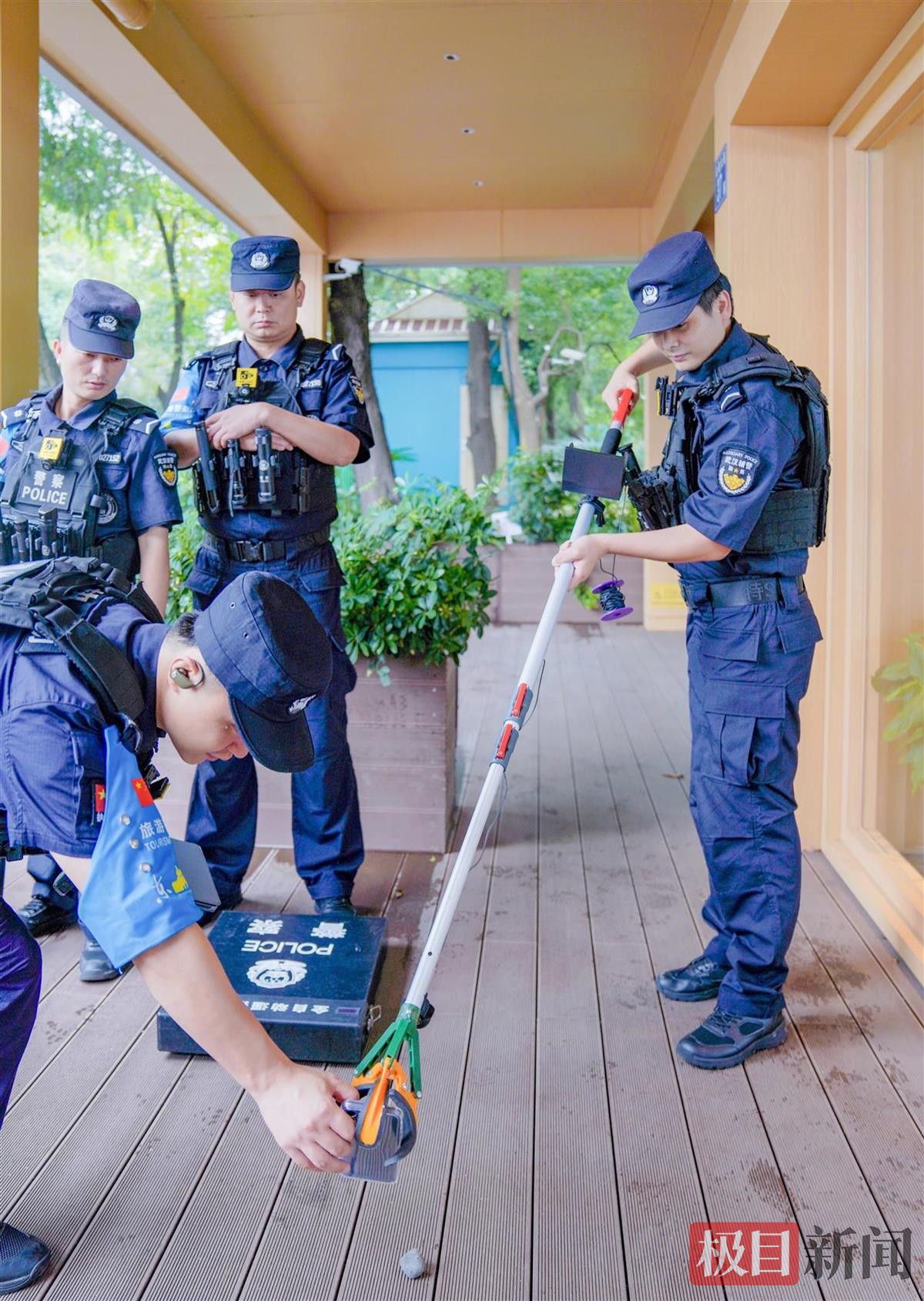 “可视化”不仅仅体现在调度上,今年亮相的“打捞神器”更成了便民亮点。这根智能打捞工具杆配有活动夹子与摄像头,能将水底画面清晰传至显示屏,帮助民警轻松定位并打捞落水手机。据悉,这也是湖北首个“打捞神器”实战应用案例。