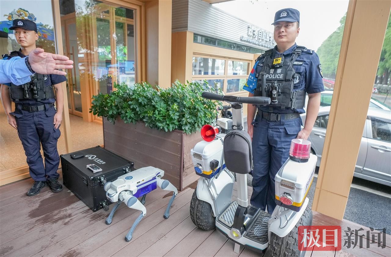 9月30日上午10时,梨园文旅联勤服务站里,警用机器狗、平衡车+5G执法仪、移动护栏+智慧喇叭等“新装备”依次排开,幸鑫向记者逐一介绍这些安保“利器”。当前,东湖风景区已构建起“水陆空”协同智慧警务体系,通过智能装备与警力联动实现全域立体防控。